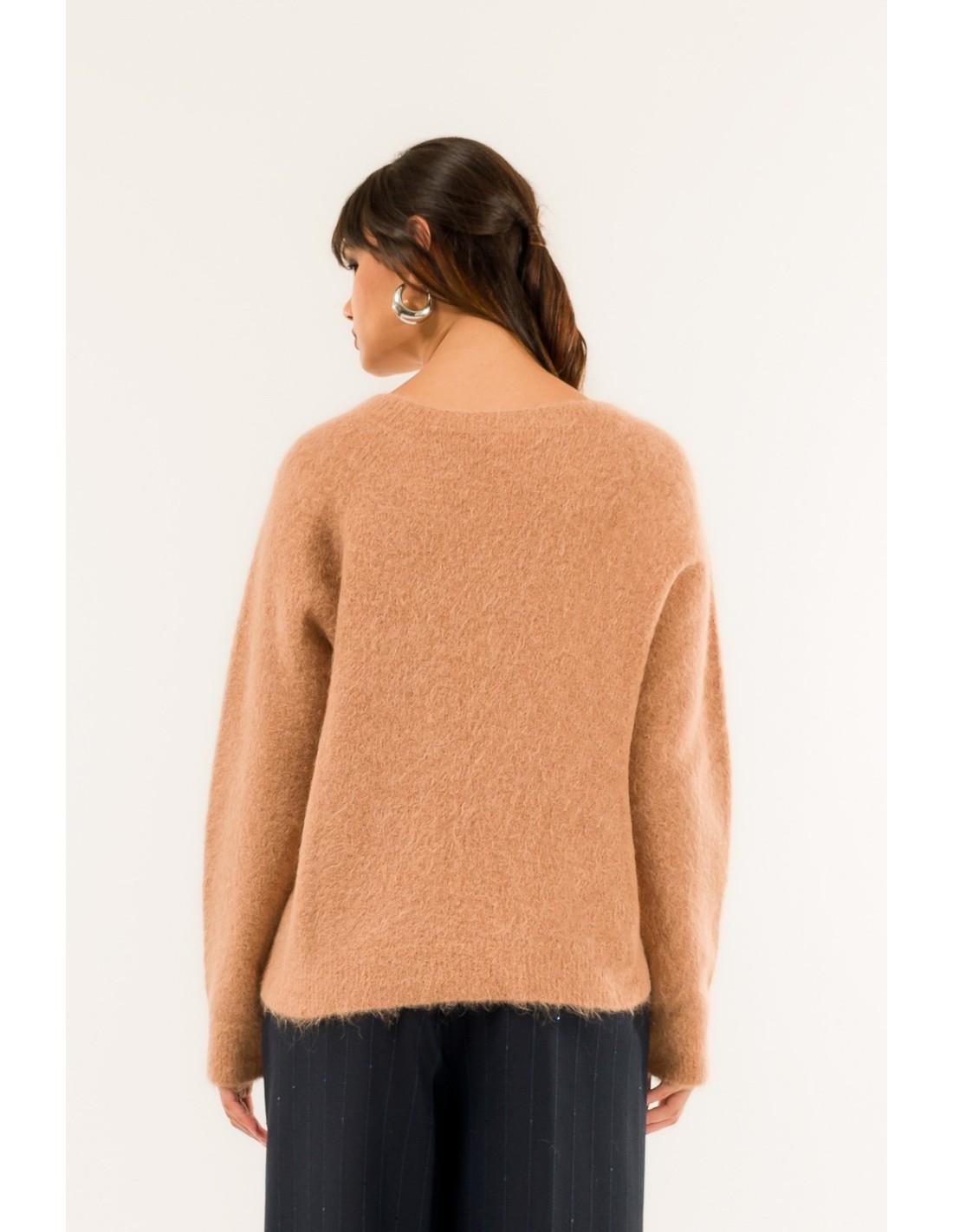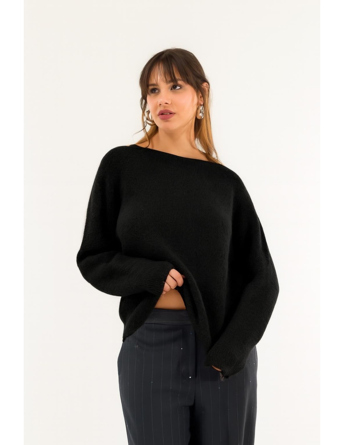 Envolvente como um abraço delicado, esta camisola combina maciez e estilo numa silhueta refinada. Perfeita para quem deseja um look feminino e sofisticado, ideal para todas as ocasiões em que queres sentir-te irresistivelmente elegante.
