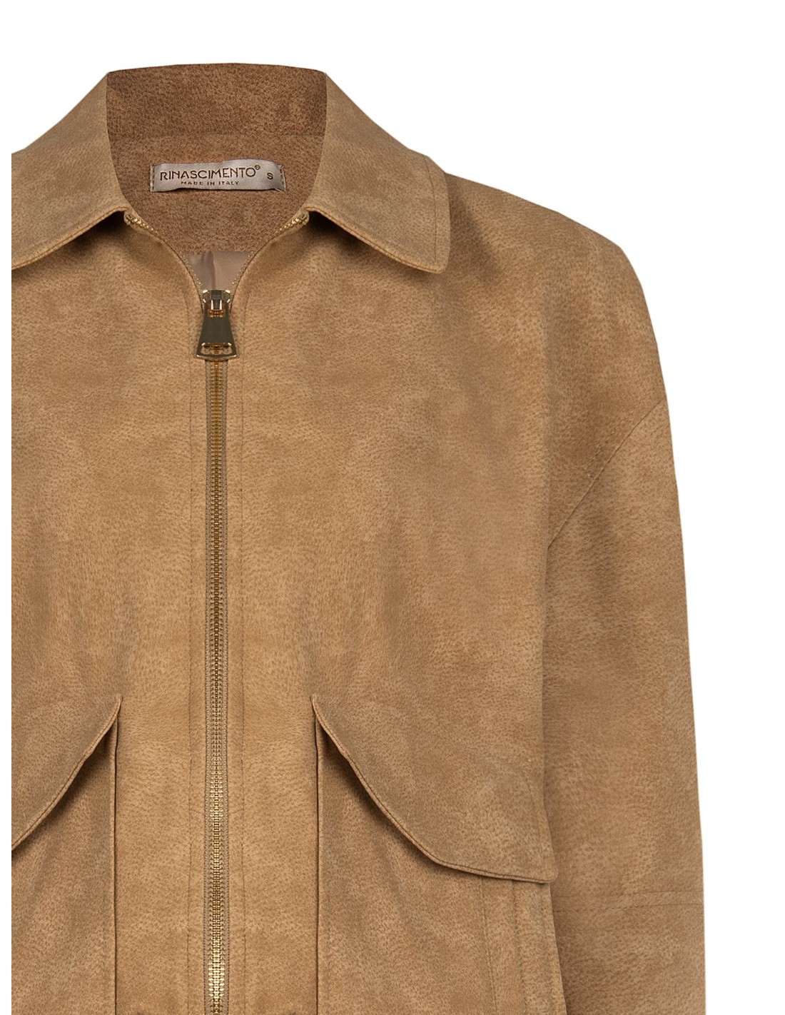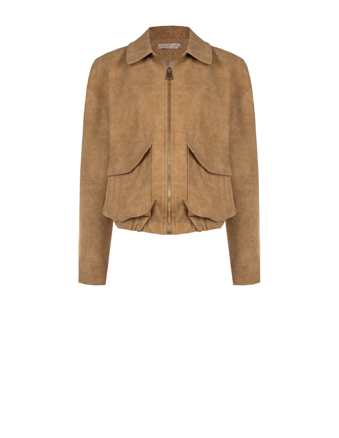 Casaco Bomber Em Pele Sintética Tipo Camurça Esfumada Com Maxi Bolsos Rinascimento