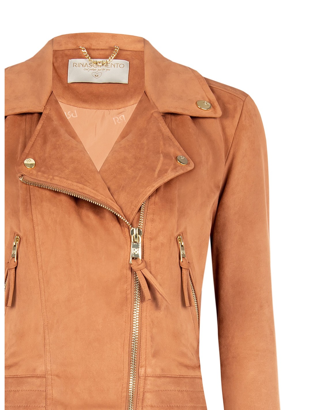 Casaco Tipo Biker Em Pele Sintética Camurça Rinascimento