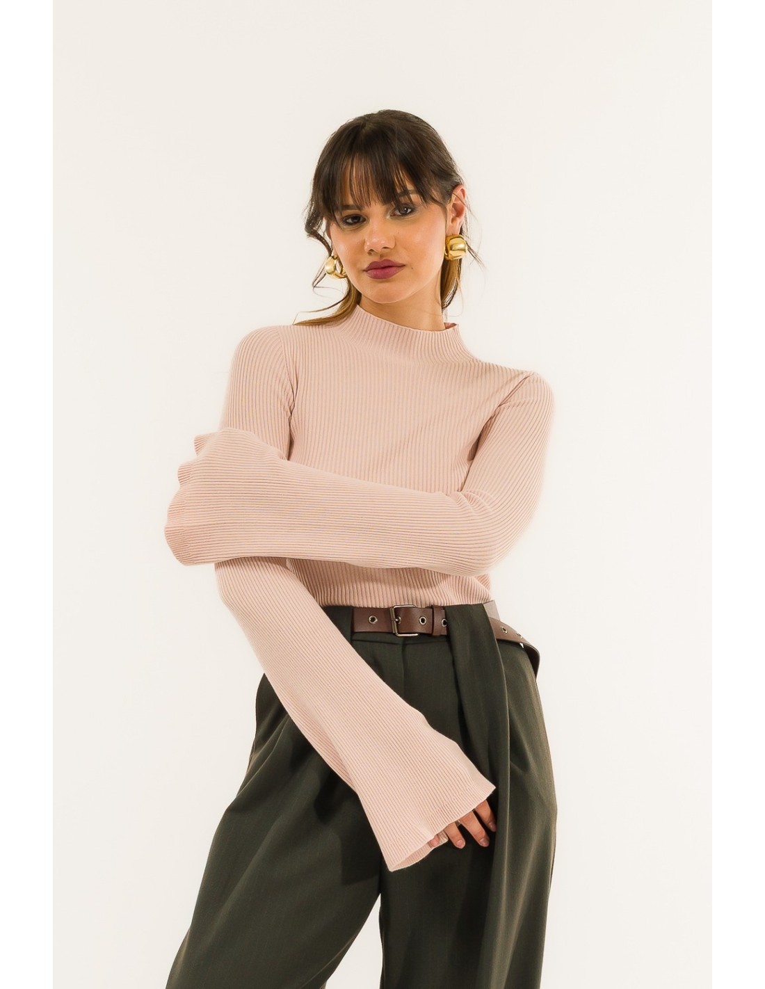 Linhas essenciais, mangas amplas de charme irresistível e uma silhueta que acaricia com delicadeza: esta camisola acrescenta um toque requintado a qualquer look, realçando a feminilidade e o estilo com uma elegância intemporal.