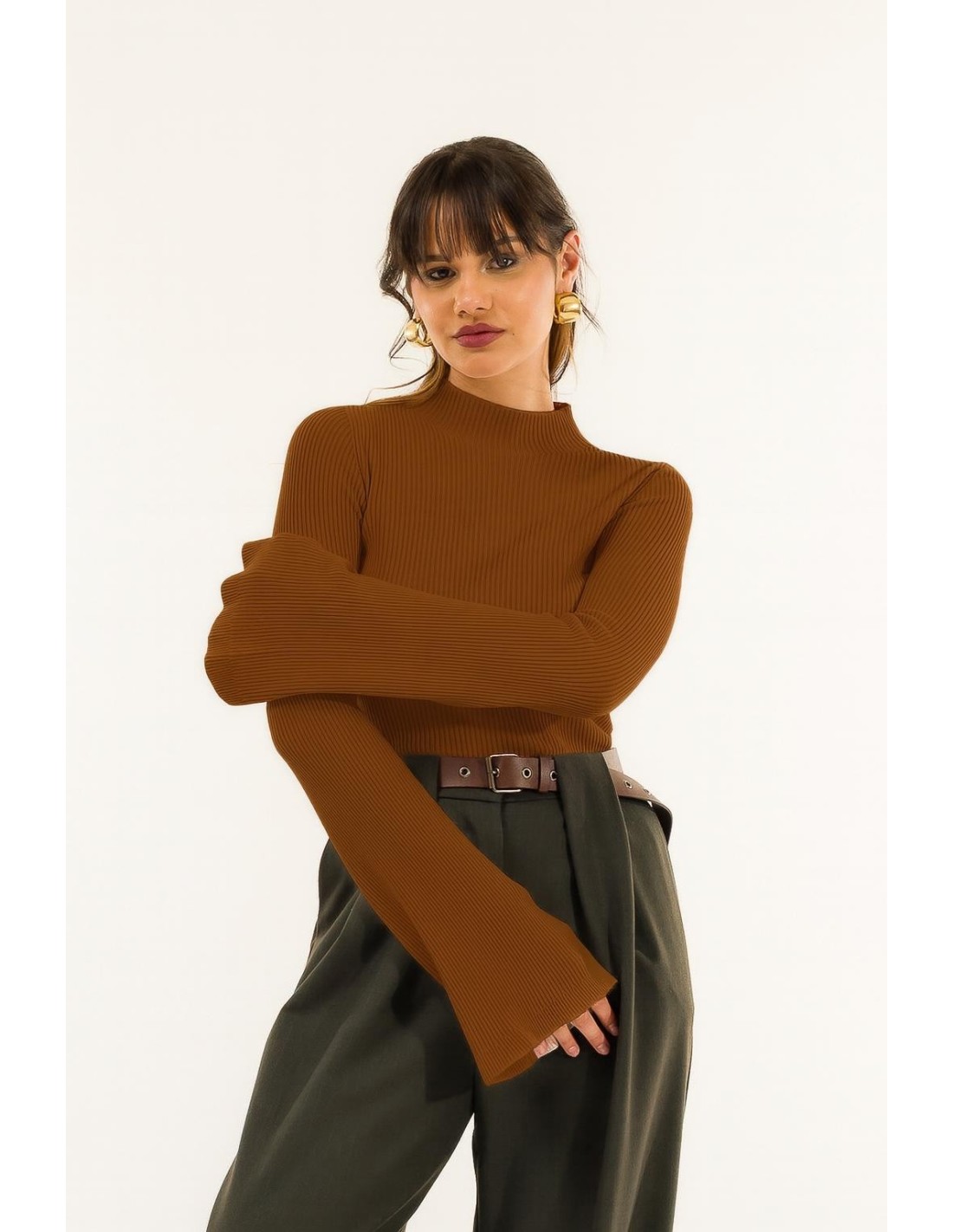 Linhas essenciais, mangas amplas de charme irresistível e uma silhueta que acaricia com delicadeza: esta camisola acrescenta um toque requintado a qualquer look, realçando a feminilidade e o estilo com uma elegância intemporal.