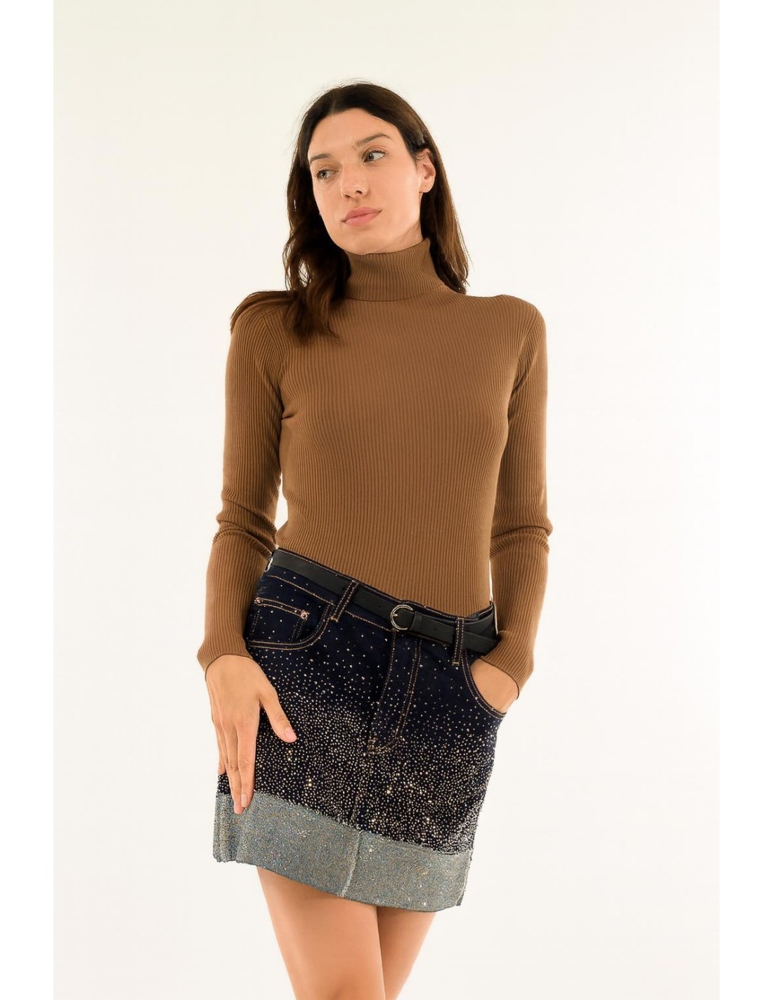 Linhas essenciais, corte justo e delicadeza refinada: esta malha canelada realça a sua feminilidade com um estilo intemporal. Perfeita por si só ou por baixo de blazers elegantes, será a base chique para os seus looks mais sofisticados.