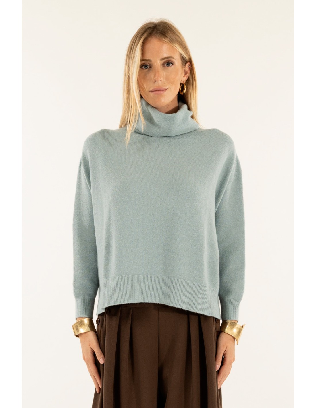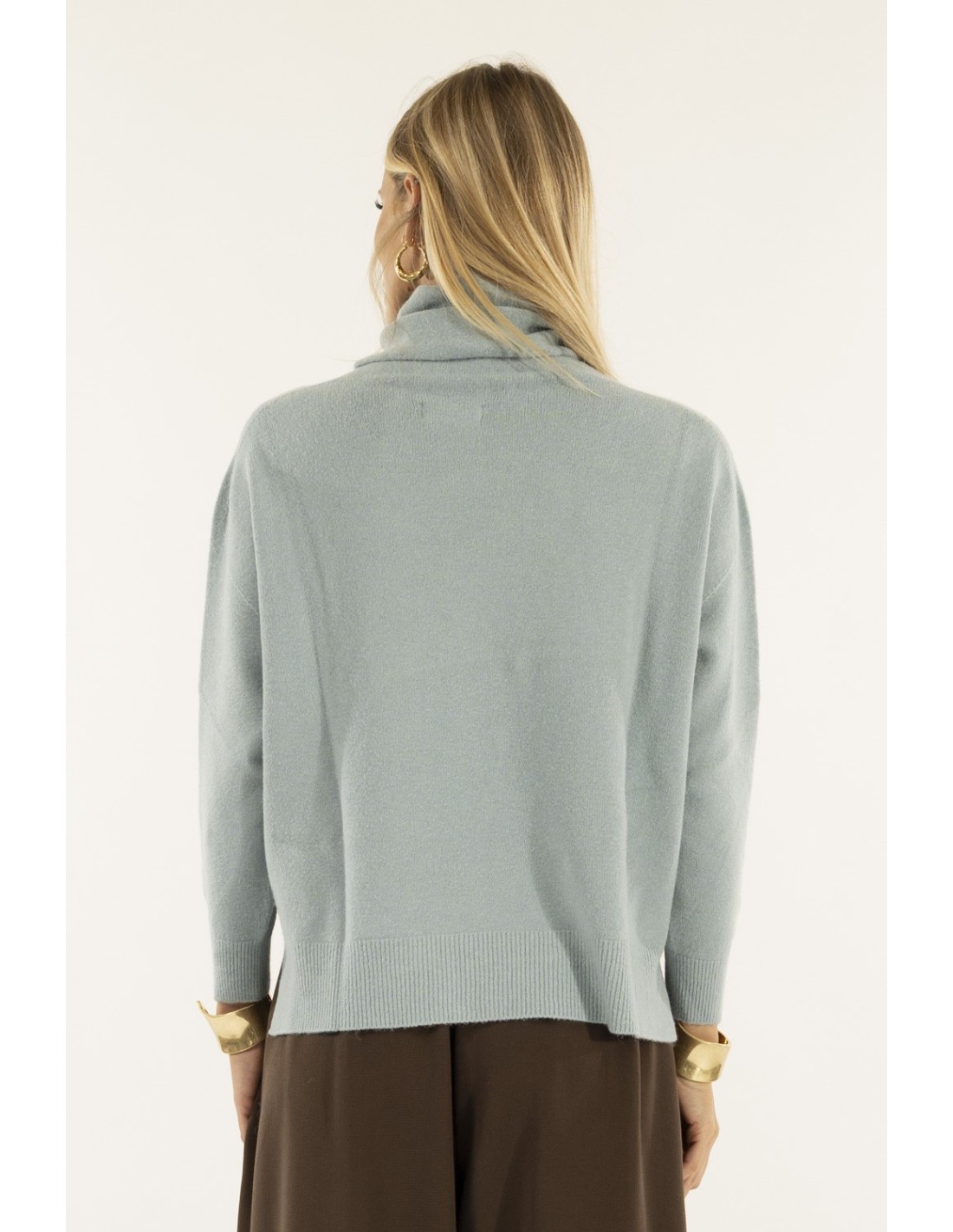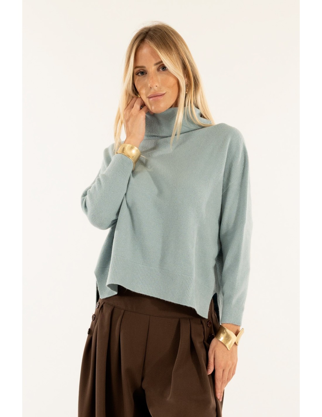 Camisola Kontatto de corte solto e ligeiramente curta, pensada para valorizar a silhueta com conforto. Em fio macio com toque quente, acabamento suave com bainhas caneladas. Gola envolvente e fendas laterais para liberdade de movimento. Perfeita para o escritório com calças largas ou para o dia a dia com denim.