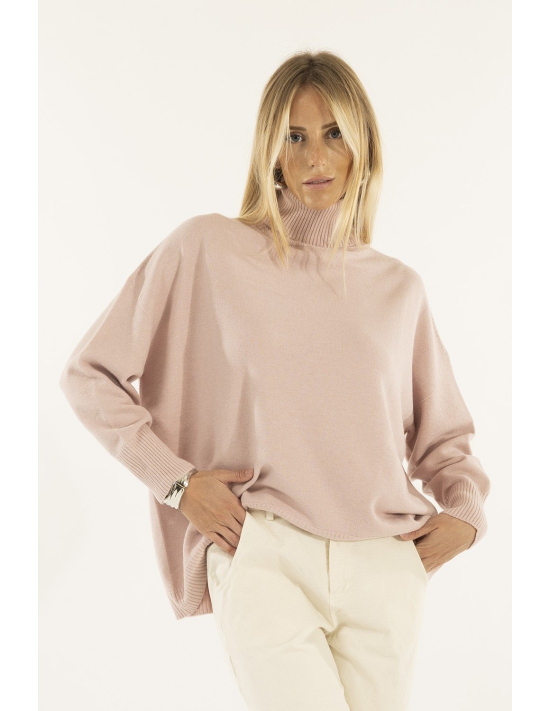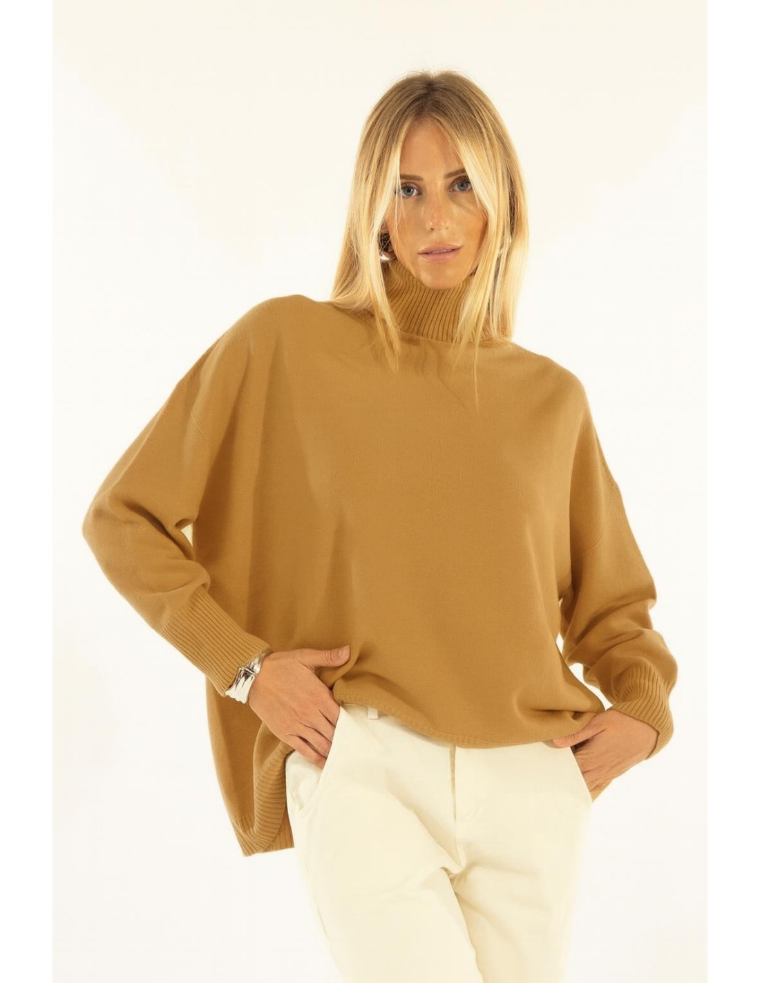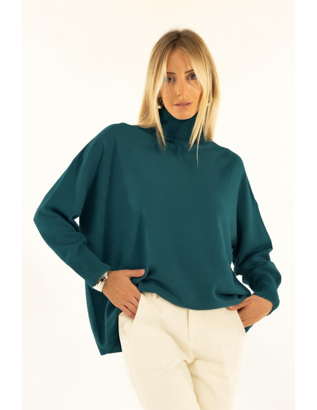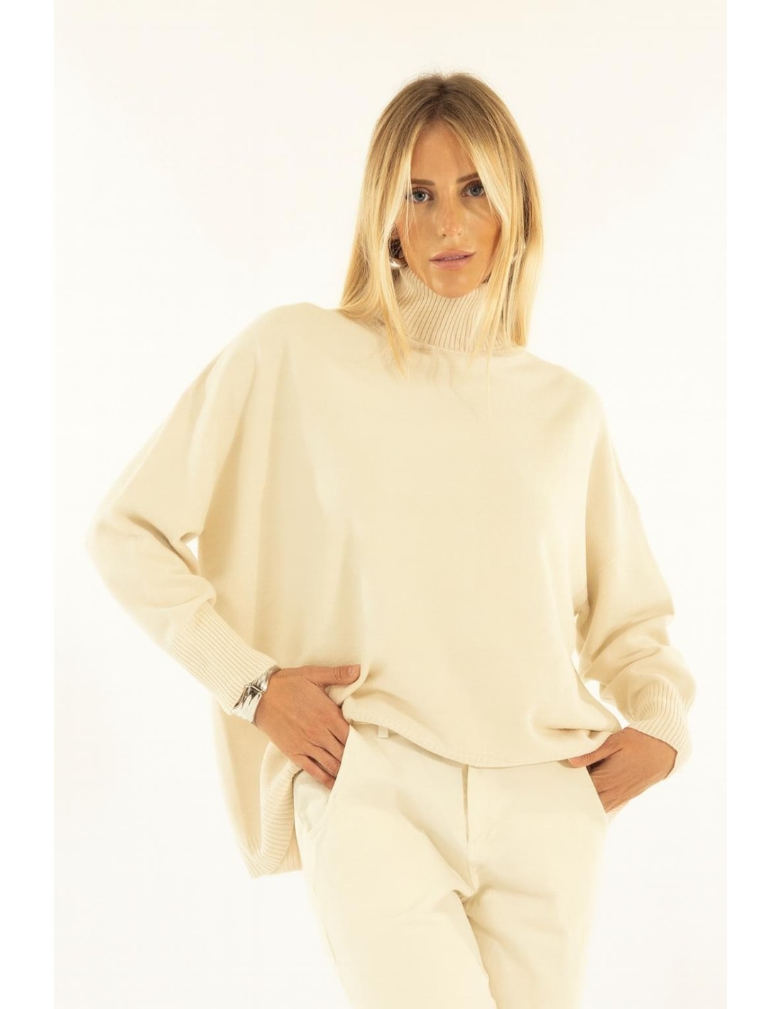 Malha larga Kontatto: ajuste suave e confortável que realça a silhueta sem a apertar. Tricot macio com toque de caxemira e acabamento canelado. Gola alta trabalhada e ombros descaídos para um toque descontraído mas chique. Perfeito da secretária para o fim de semana, fácil de vestir e de misturar e combinar.