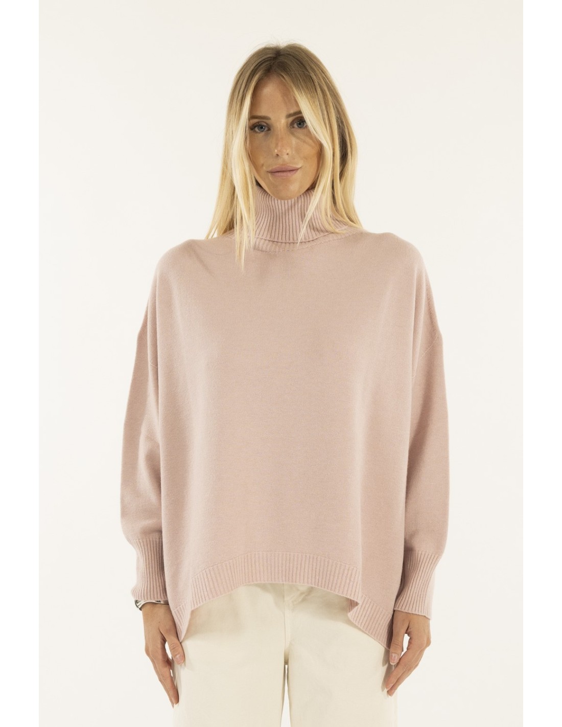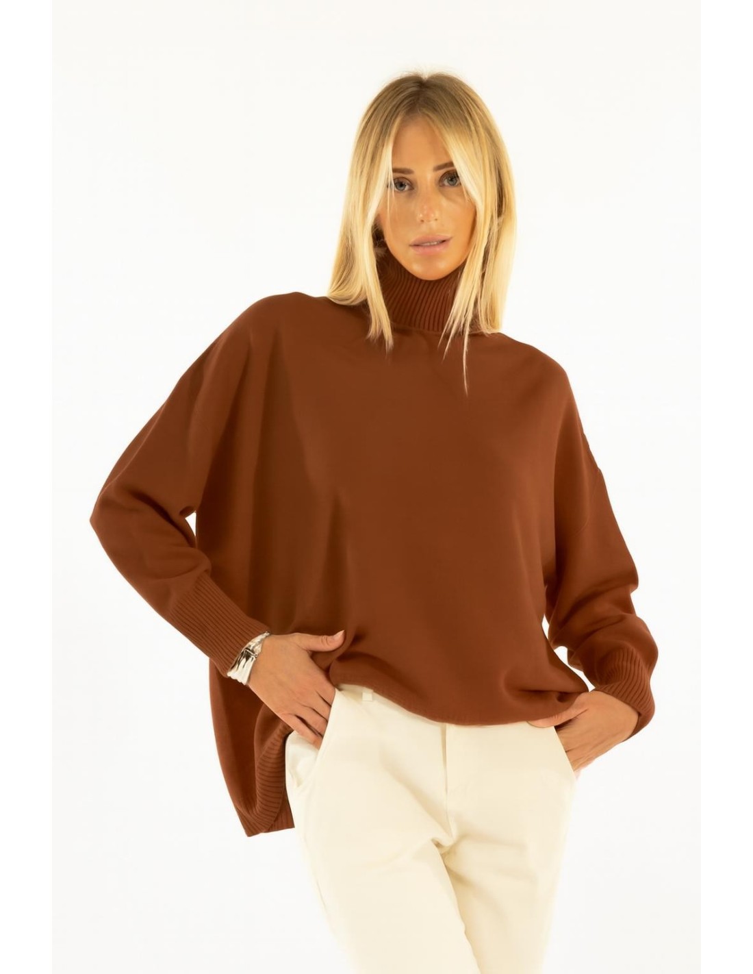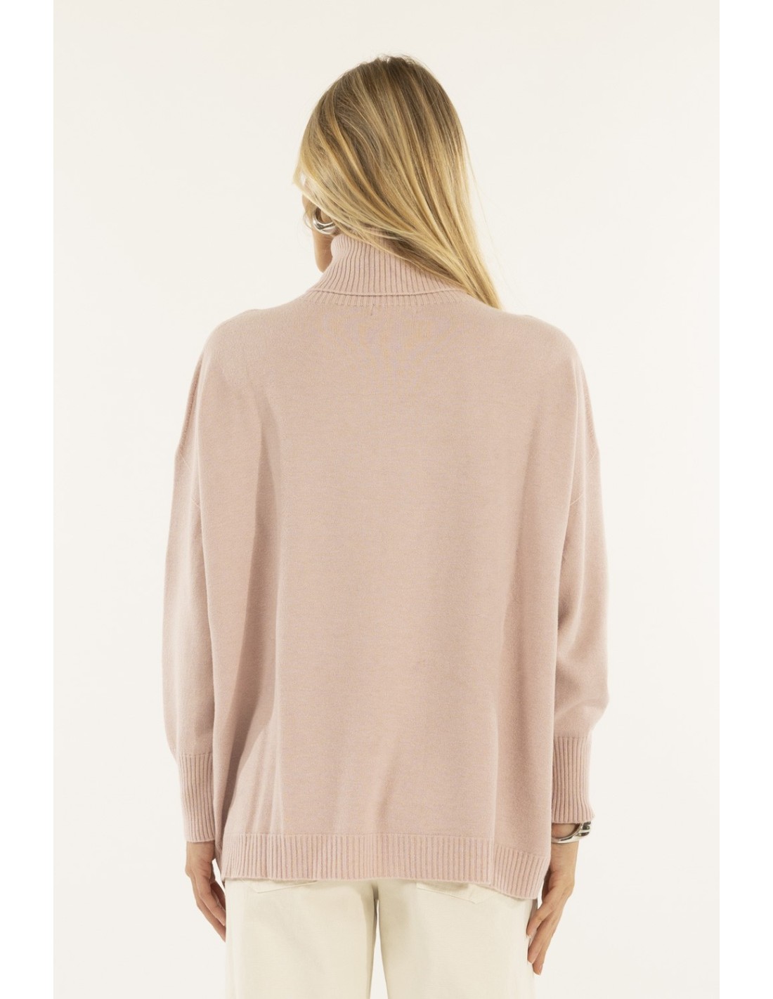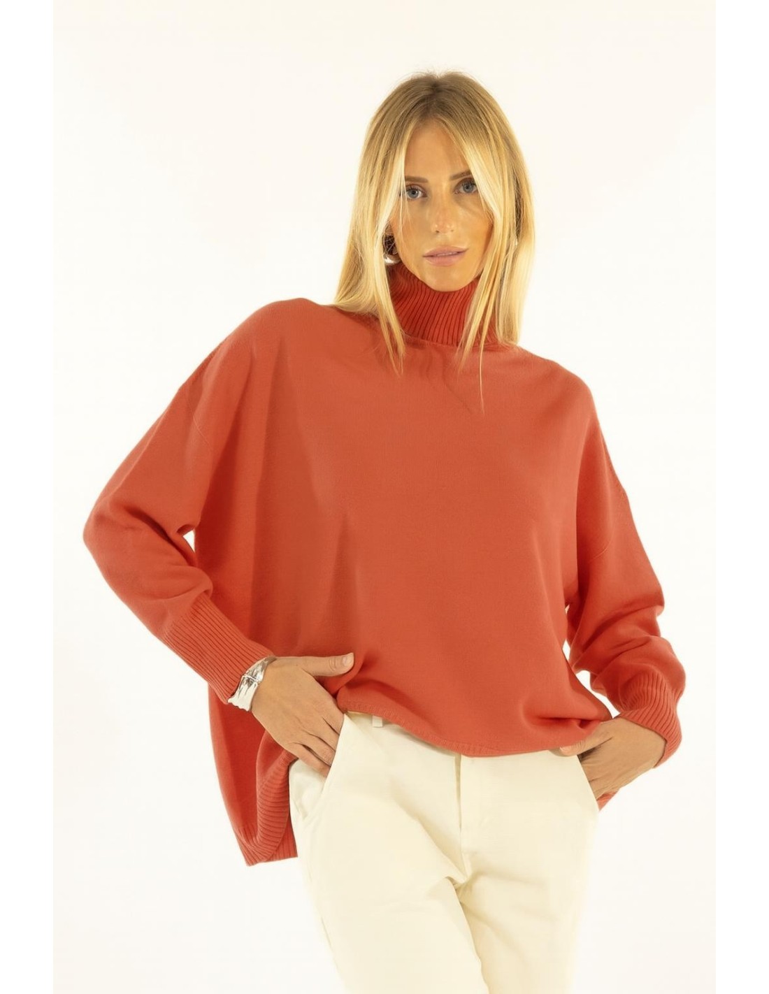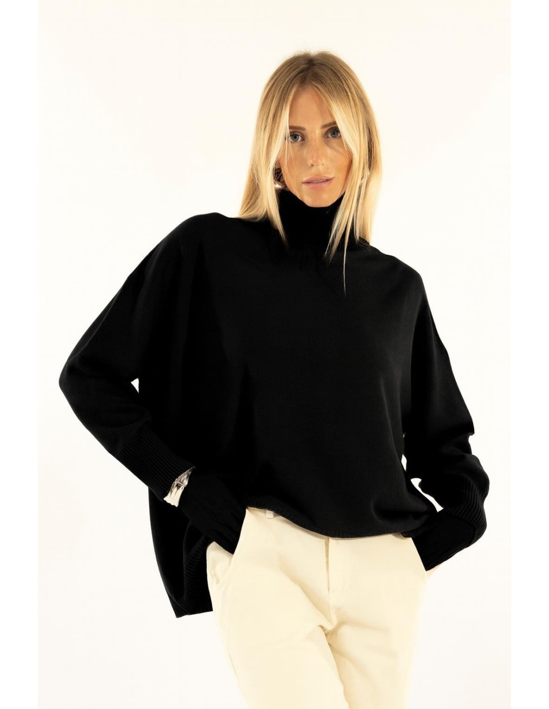 Malha larga Kontatto: ajuste suave e confortável que realça a silhueta sem a apertar. Tricot macio com toque de caxemira e acabamento canelado. Gola alta trabalhada e ombros descaídos para um toque descontraído mas chique. Perfeito da secretária para o fim de semana, fácil de vestir e de misturar e combinar.
