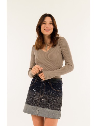 Linhas essenciais e refinadas para uma peça de vestuário que abraça a forma com delicadeza. O decote em V profundo realça a feminilidade, enquanto o tecido canelado confere conforto e classe. Perfeito para looks sofisticados e versáteis, para usar todos os dias com elegância.