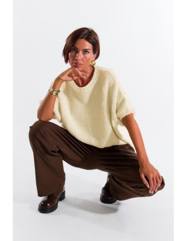 Kontatto malha de mangas curtas com um corte macio, que acaricia a silhueta sem marcar. Fio macio e leve com efeito fluffy. Decote redondo em canelado e barra elástica para maior conforto. Versátil do escritório ao dia a dia, combina com denim ou tailoring para um estilo cuidado e feminino.