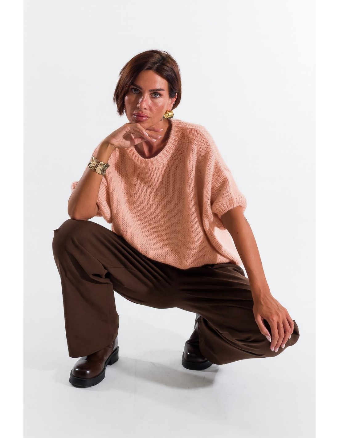 Kontatto malha de mangas curtas com um corte macio, que acaricia a silhueta sem marcar. Fio macio e leve com efeito fluffy. Decote redondo em canelado e barra elástica para maior conforto. Versátil do escritório ao dia a dia, combina com denim ou tailoring para um estilo cuidado e feminino.