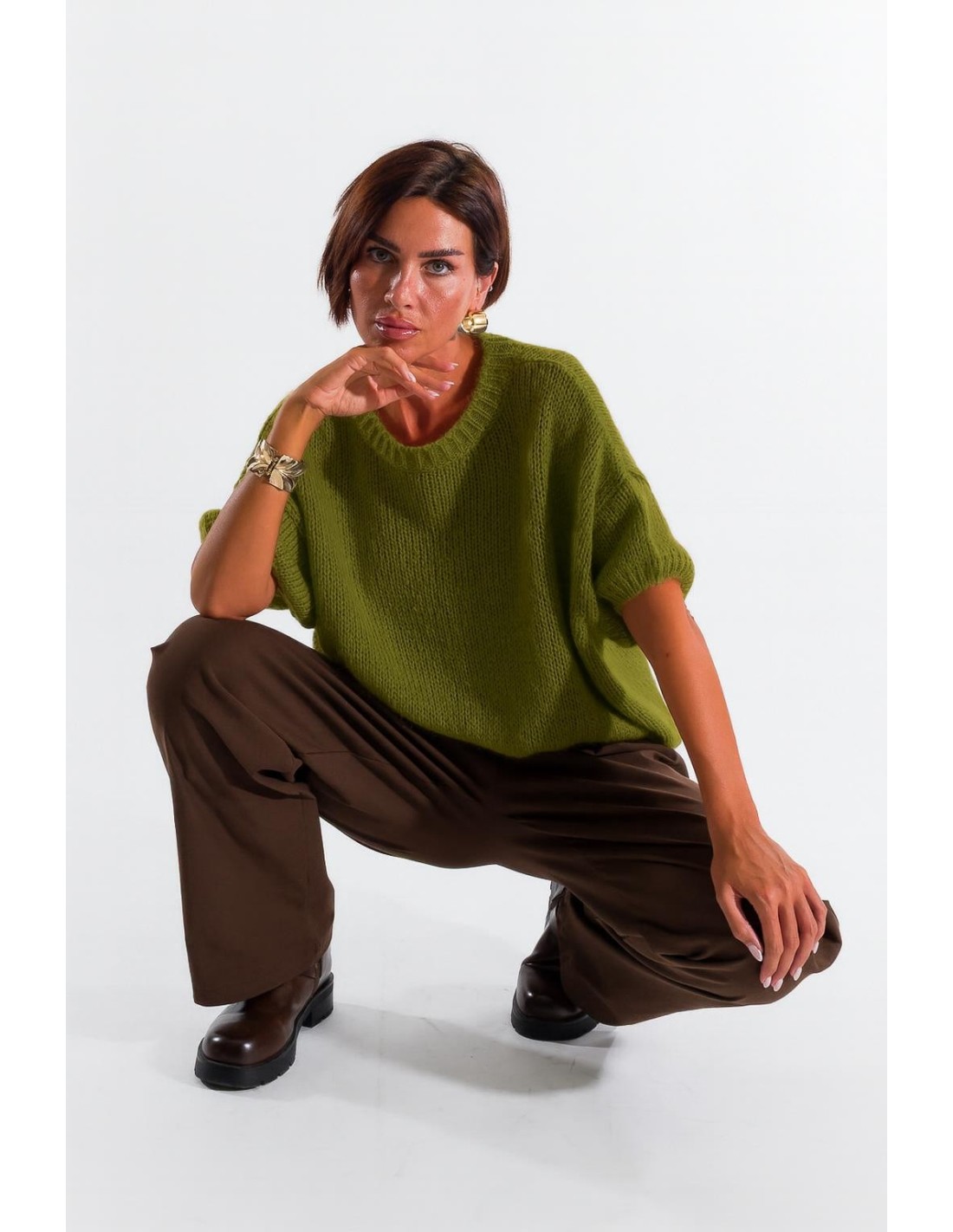 Kontatto malha de mangas curtas com um corte macio, que acaricia a silhueta sem marcar. Fio macio e leve com efeito fluffy. Decote redondo em canelado e barra elástica para maior conforto. Versátil do escritório ao dia a dia, combina com denim ou tailoring para um estilo cuidado e feminino.
