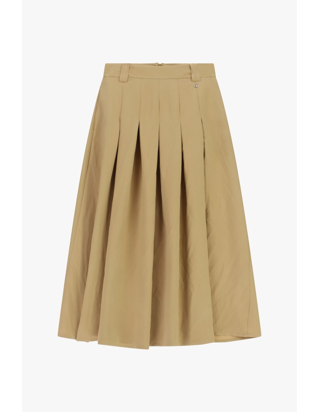 Esta saia midi com pregas profundas destaca-se pelo design feminino e confortável, perfeita para te moveres com liberdade no dia a dia. Os passantes na cintura permitem combiná-la facilmente com um cinto. Imagina como é prática: combina-a com um top para um look fresco e cuidado nos detalhes.