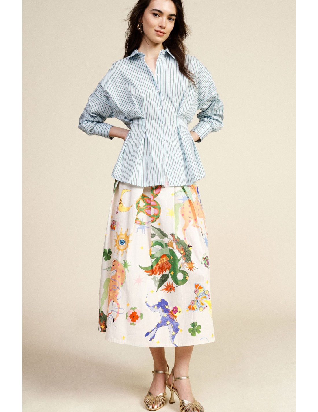 Deixa-te envolver pela magia desta saia plissada, perfeita para realçar a tua feminilidade a cada passo. A estampa vibrante entrelaça-se harmoniosamente ao longo do comprimento, captando a atenção sem esforço. Ideal para os dias em que o conforto se alia a um estilo arrojado, acompanhando-te em cada aventura do dia a dia.