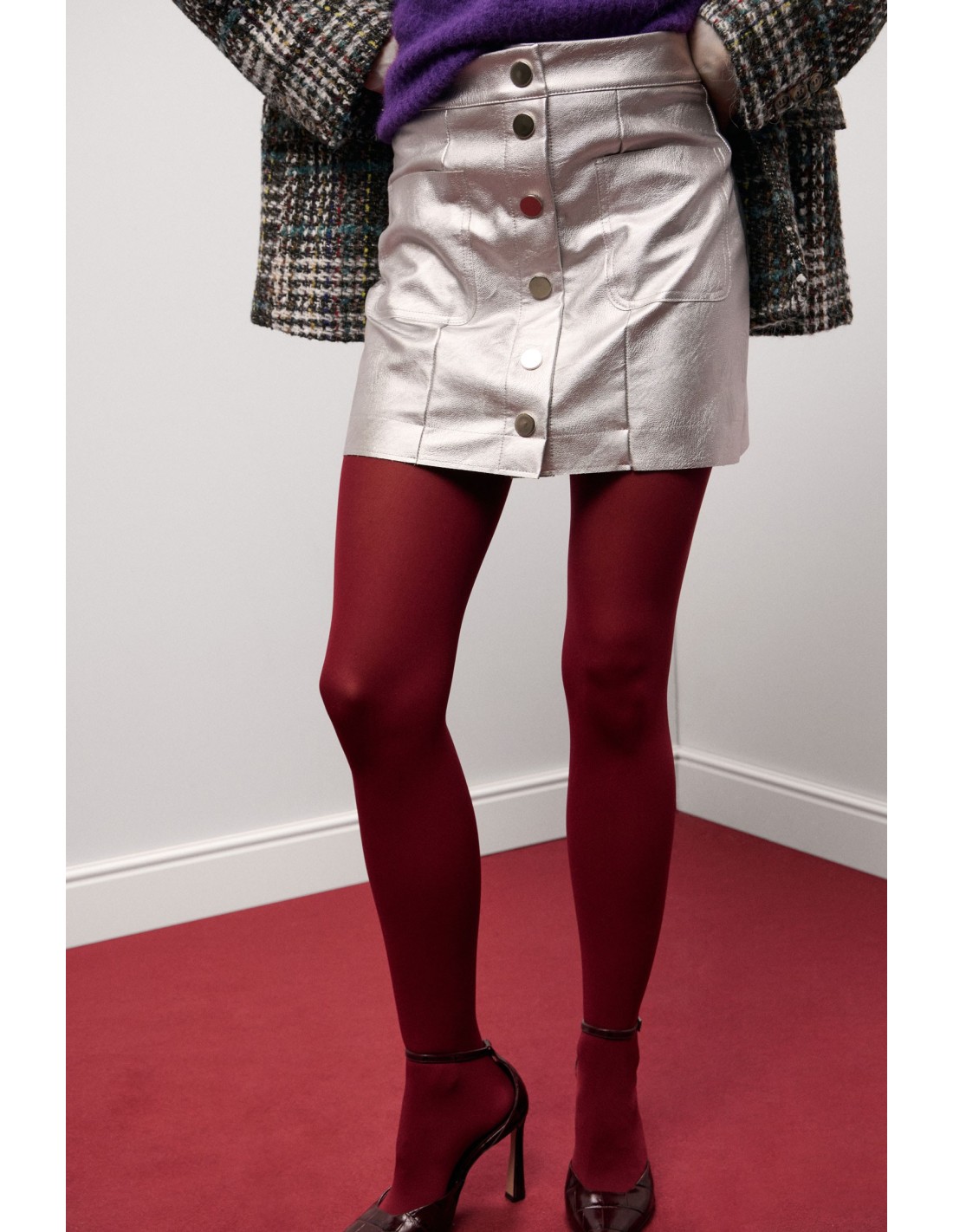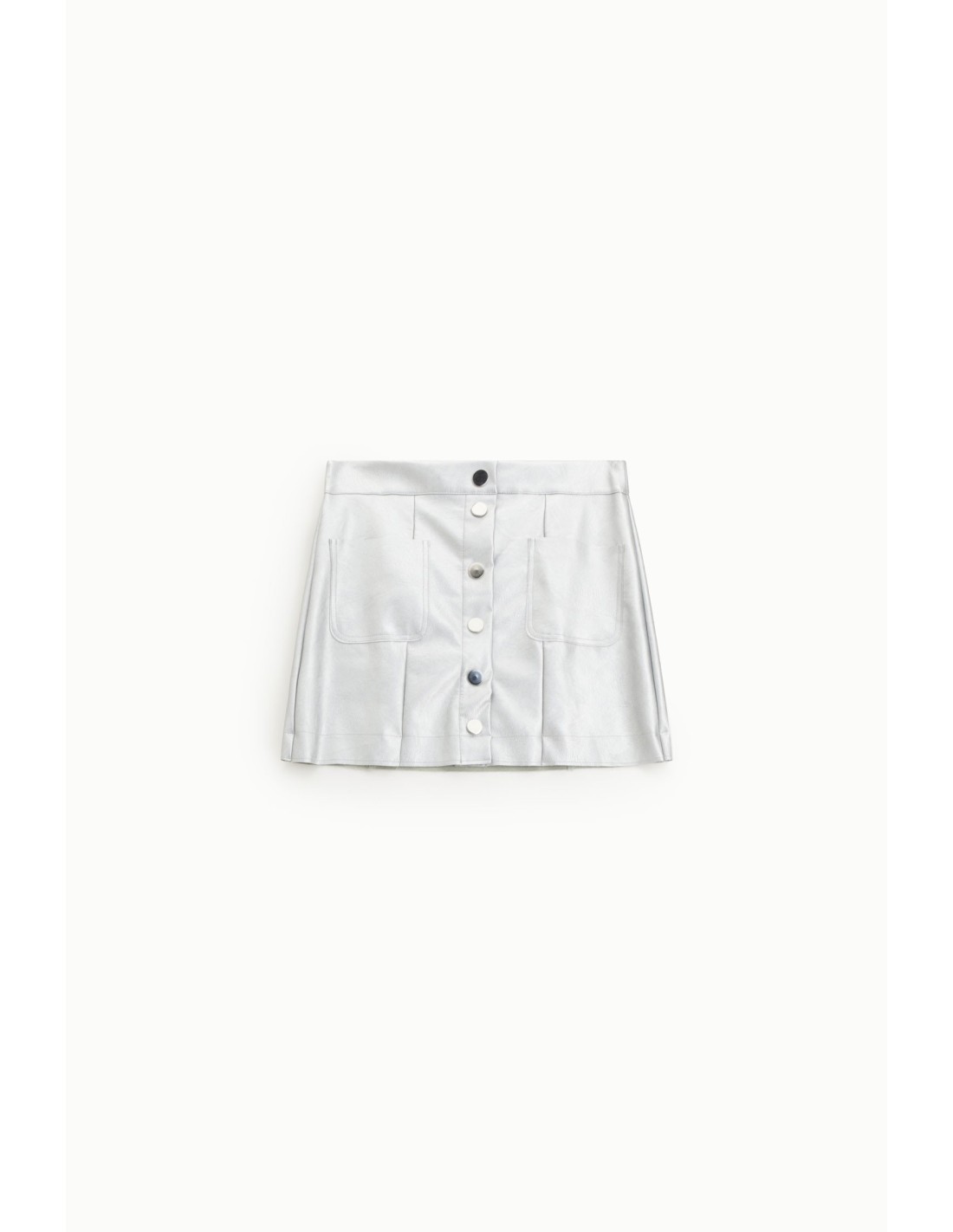 A linha ligeiramente evasada desta saia curta confere movimento e frescor, perfeita para os dias mais leves. Os grandes botões frontais e os dois bolsos aplicados acrescentam carácter sem renunciar à praticidade, ideal para as tuas saídas quotidianas ou para dar um toque de originalidade aos teus looks.
