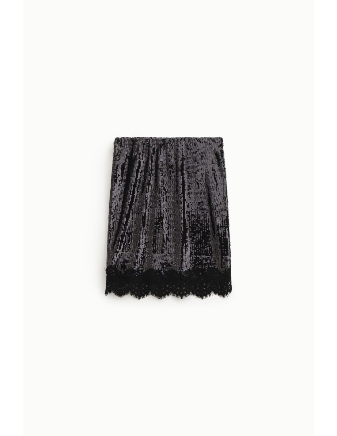 Saia Curta com Lantejoulas e Borda em Renda Dixie