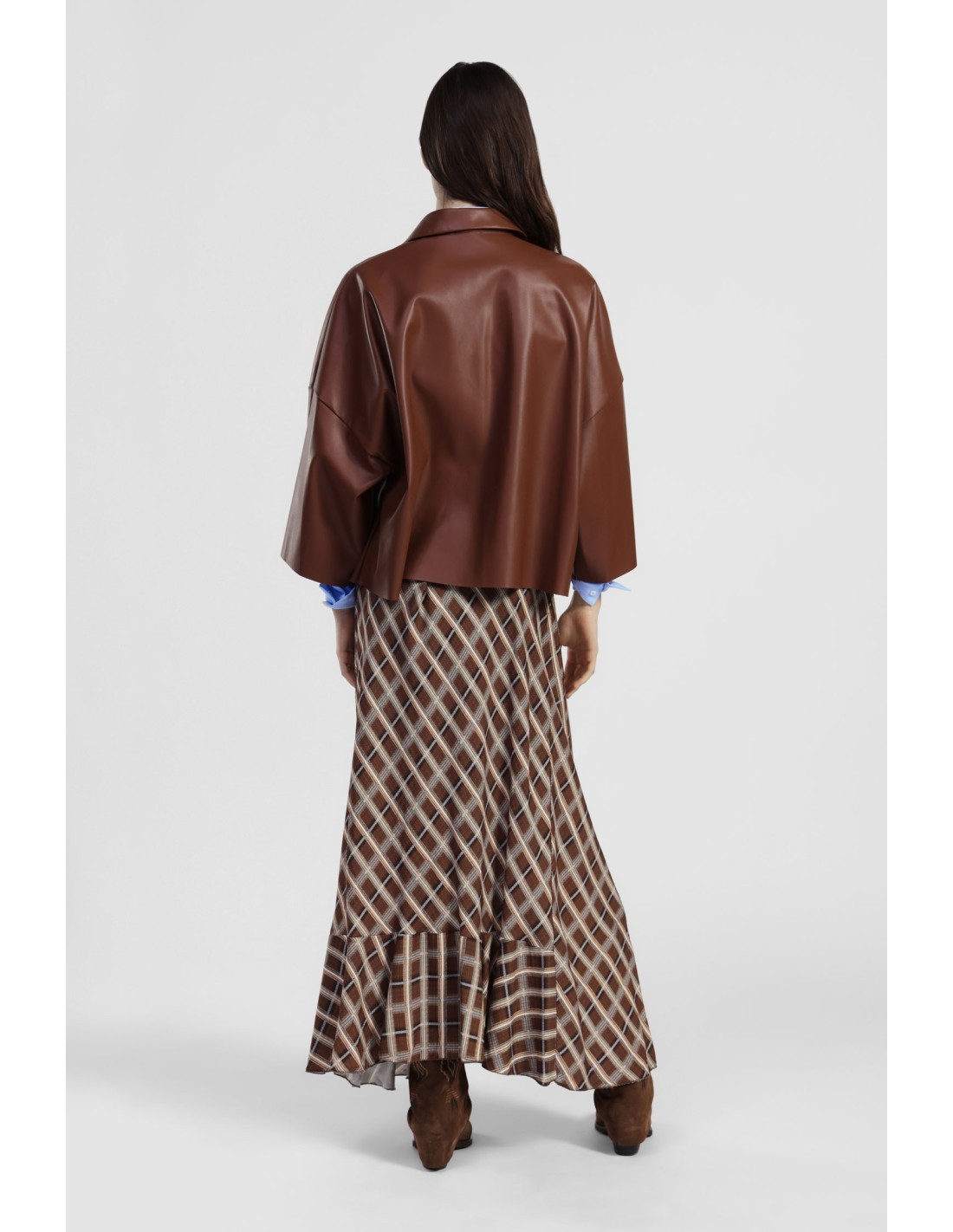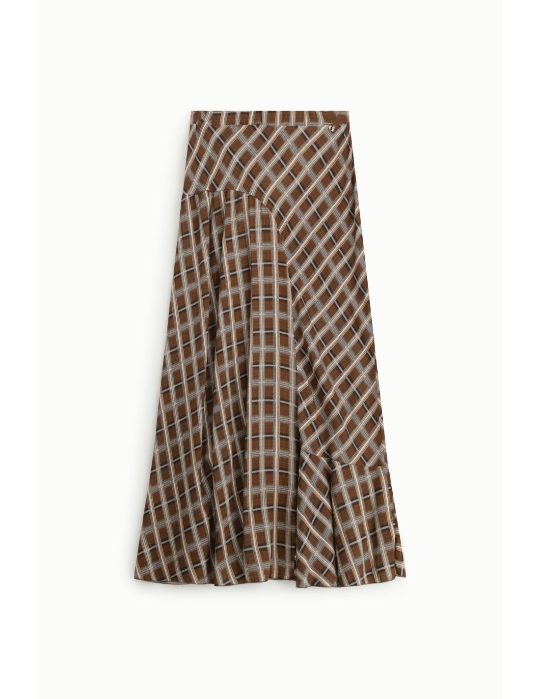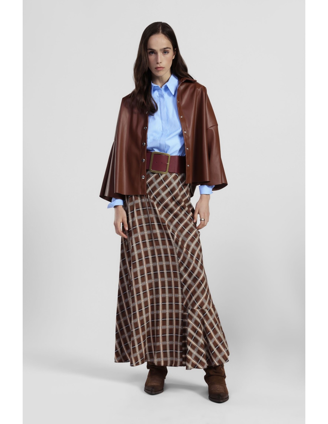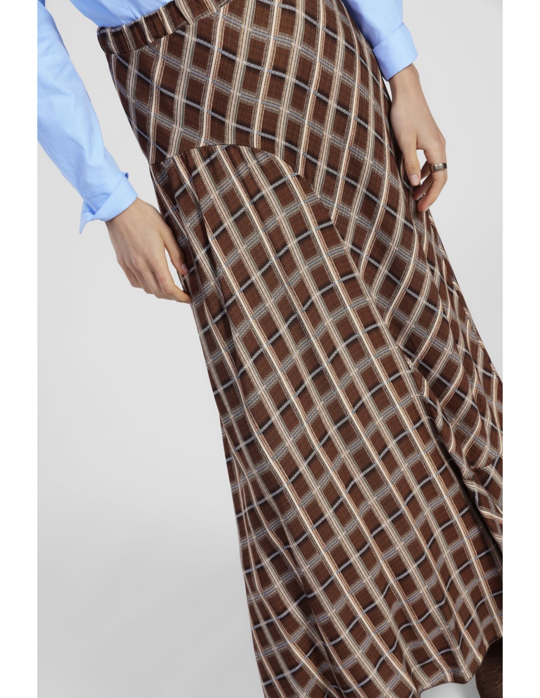 Viva todos os dias com um toque original graças a esta saia longa de cintura alta com padrão xadrez. O corte evasé assegura movimento e conforto, valorizando a silhueta com detalhes de alfaiataria que se notam. Perfeita para combinar com camisas ou camisolas para um estilo feminino e versátil.