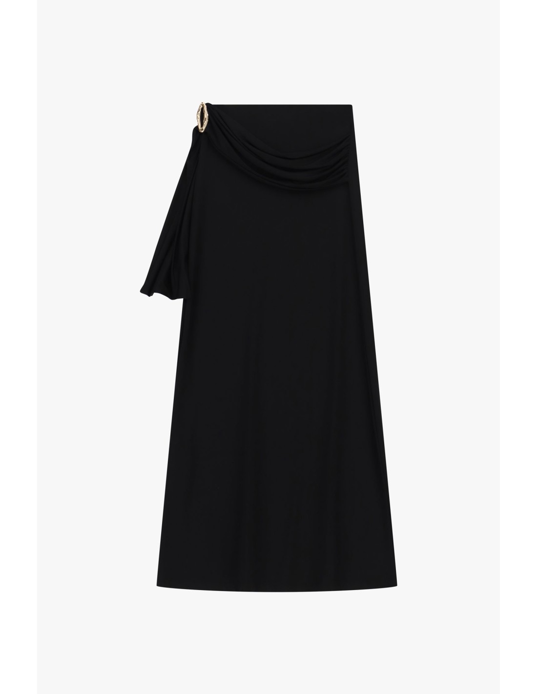 Saia Midi Com Drapeado E Detalhe Jóia Dixie