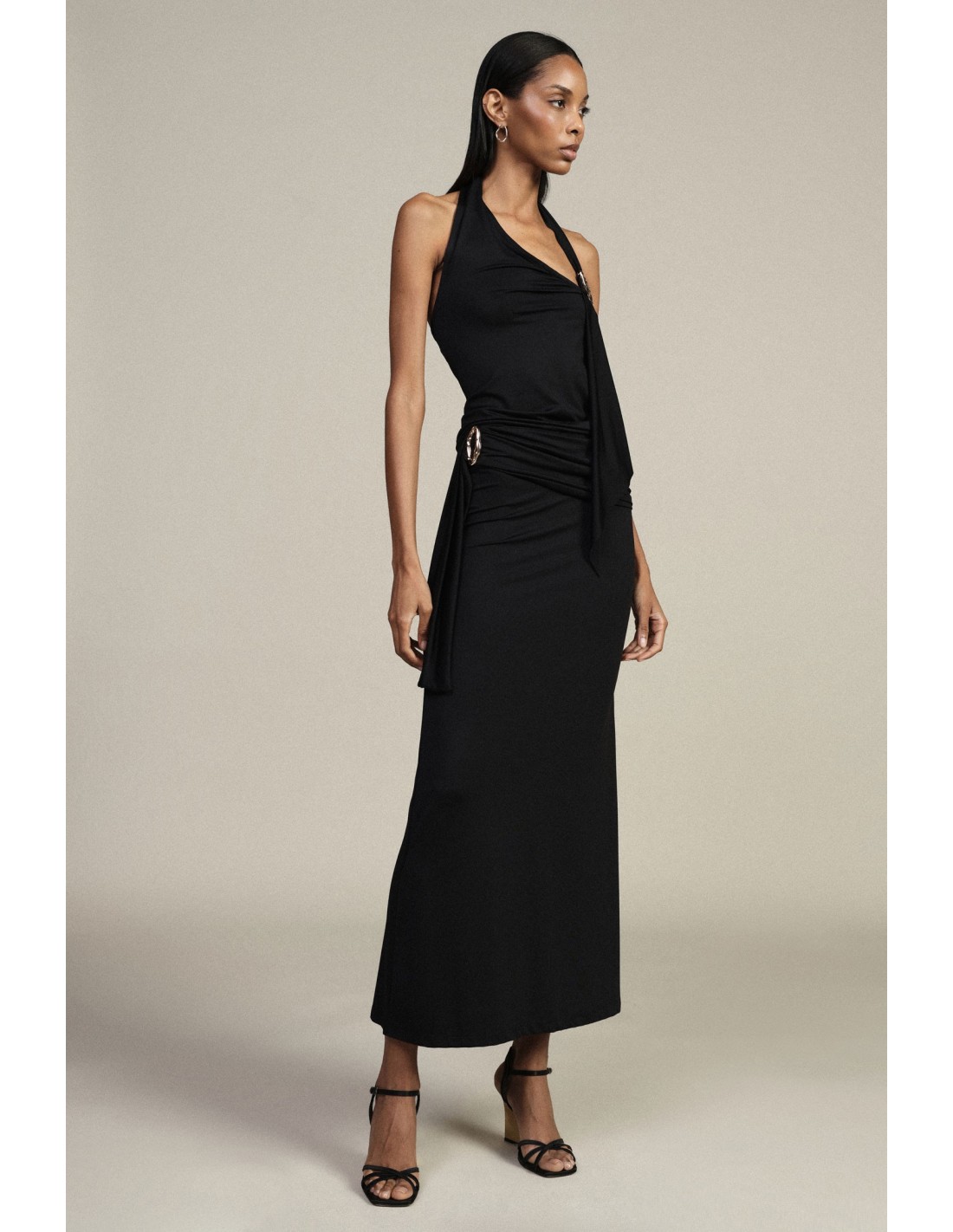 Esta saia midi conquista à primeira vista com o seu drapeado lateral que cai delicadamente sobre os quadris, realçando o movimento de cada passo. O detalhe joia em metal confere um toque de originalidade que faz com que te sintas especial mesmo nos dias mais simples. Perfeita para valorizar o estilo feminino e versátil em qualquer ocasião.