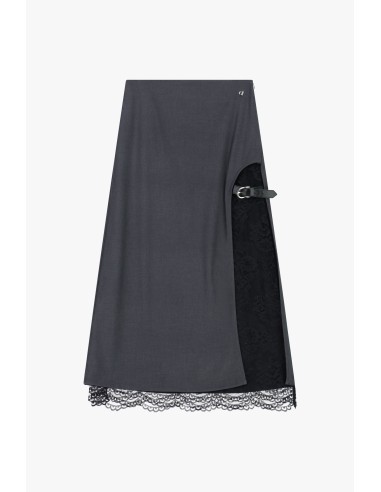 Saia Midi Com Inserto De Renda E Fivela Lateral Dixie