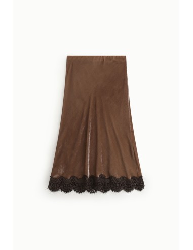 Saia Midi Efeito Veludo Com Borda De Renda Dixie