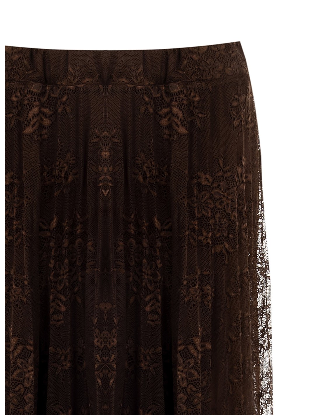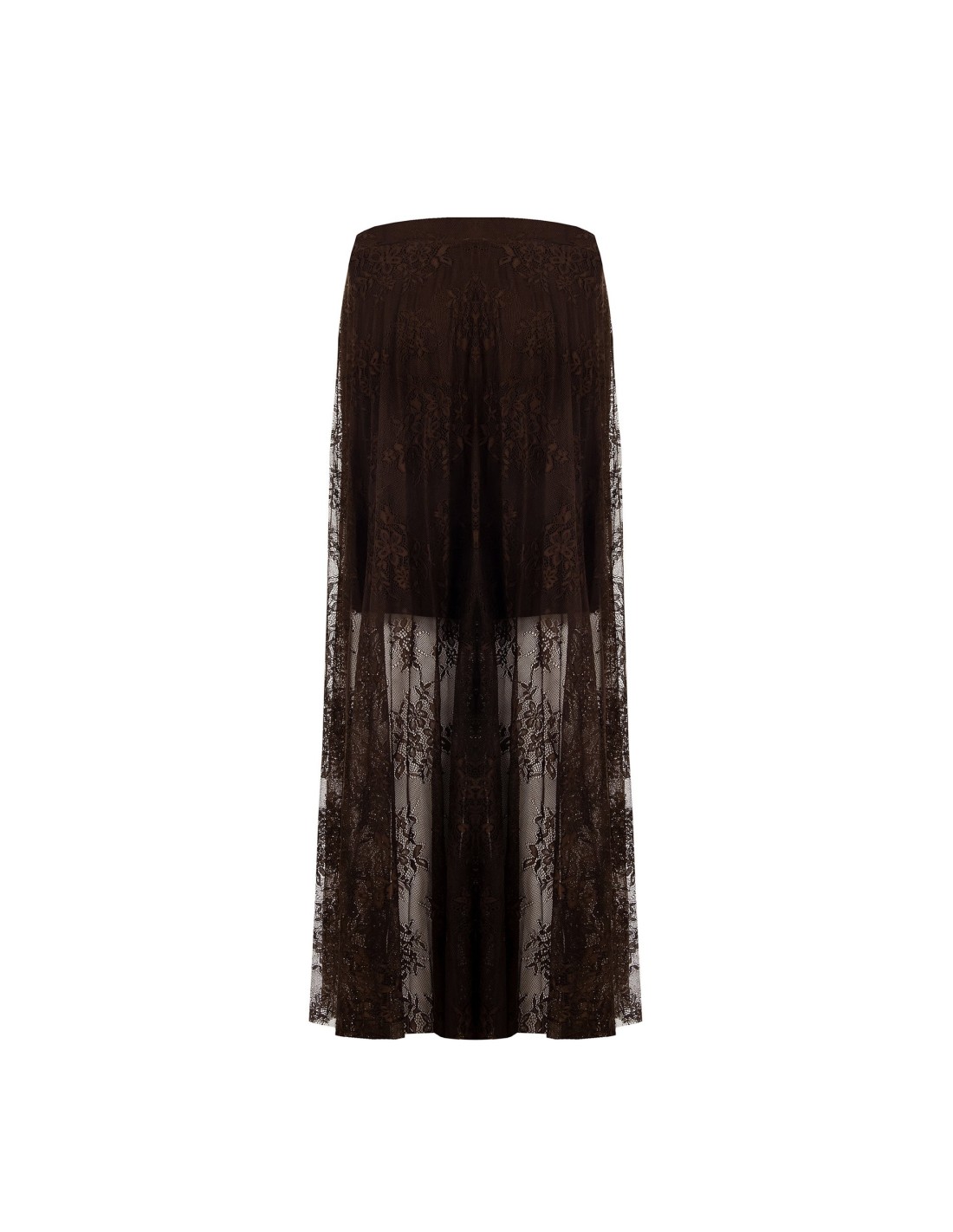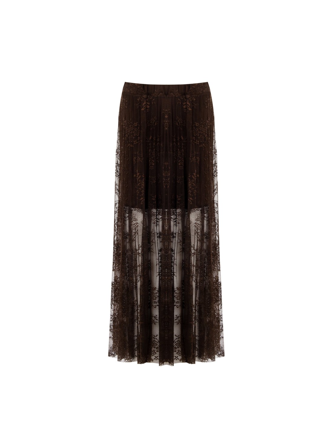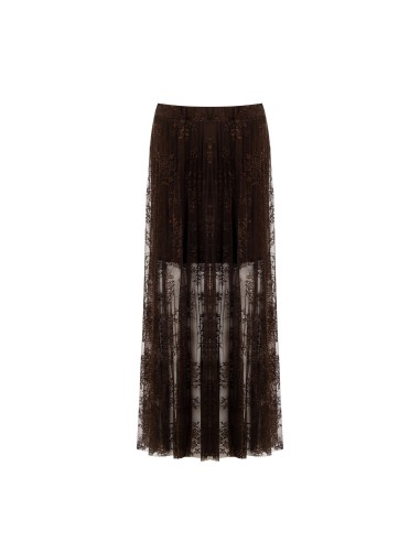 Assinada Rinascimento, silhueta fluida de cintura média com um caimento cómodo e esbelto. Tule bordado com efeito renda sobre base macia, textura leve e esvoaçante. Destaques: painel transparente na bainha e forro curto para um jogo de ver‑não‑ver; cinturino elástico invisível. Perfeita para festas e jantares, versátil também para cerimónias.