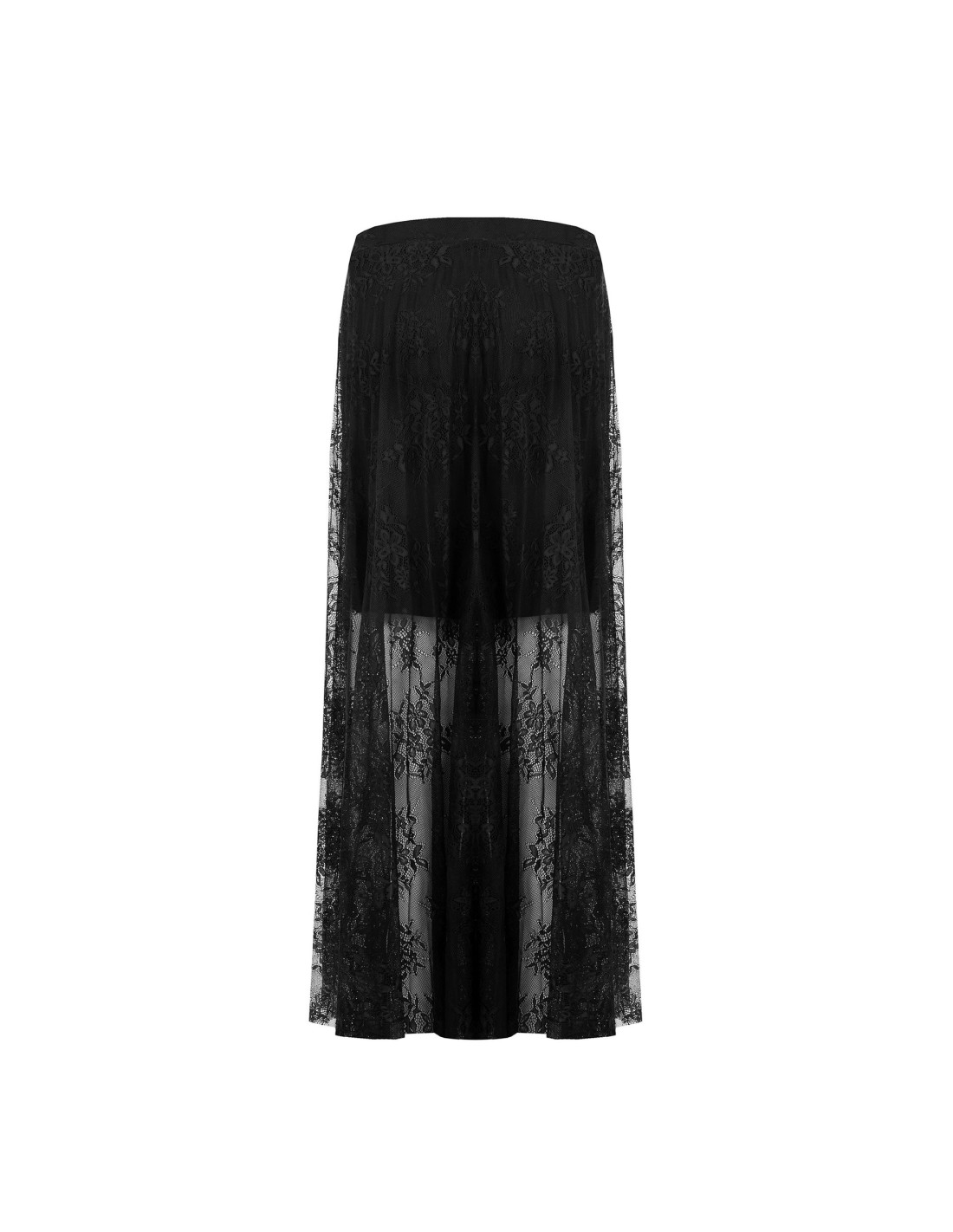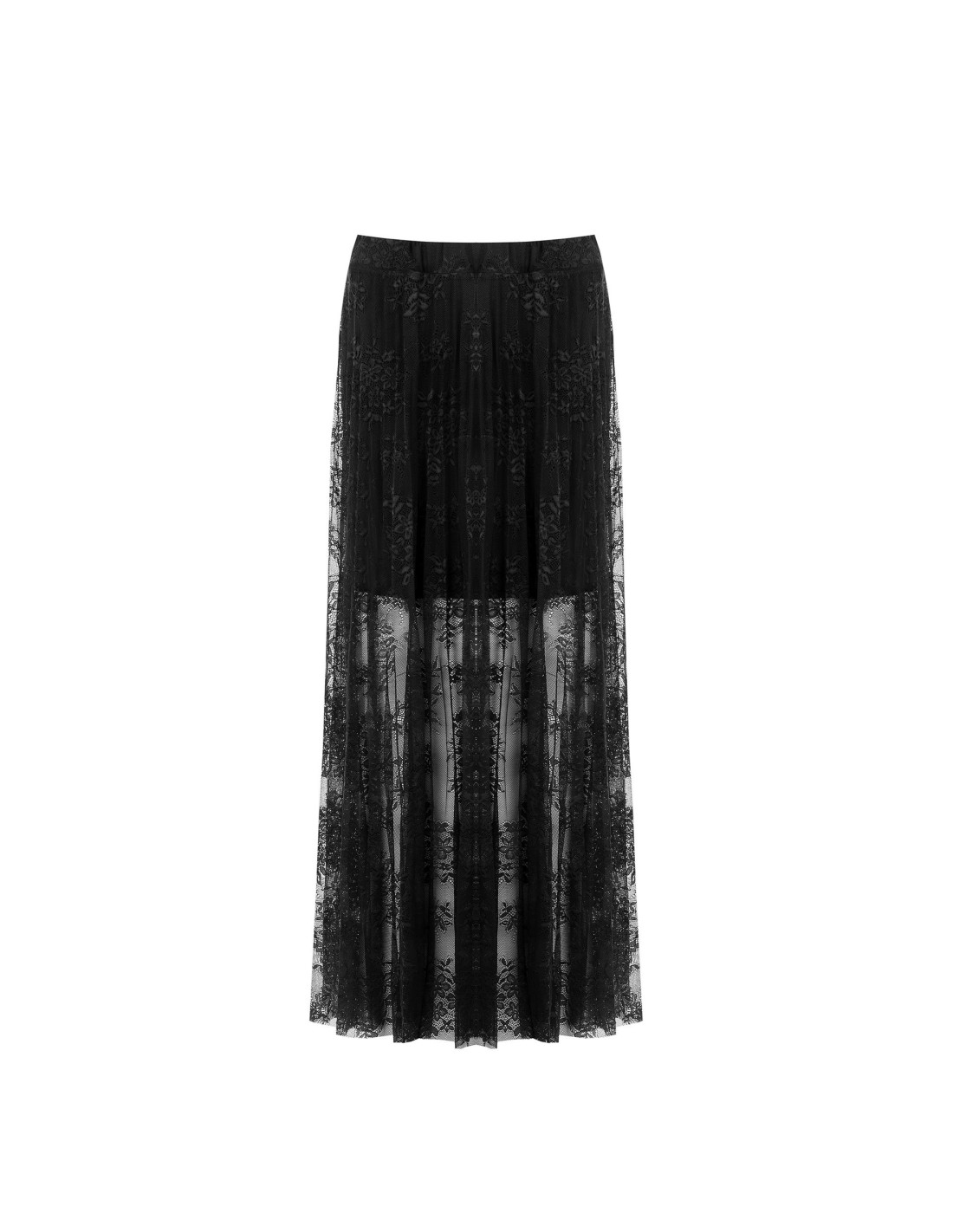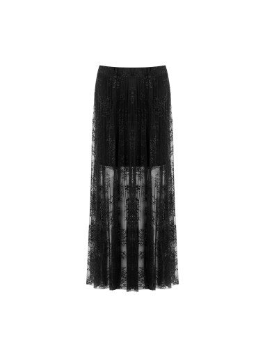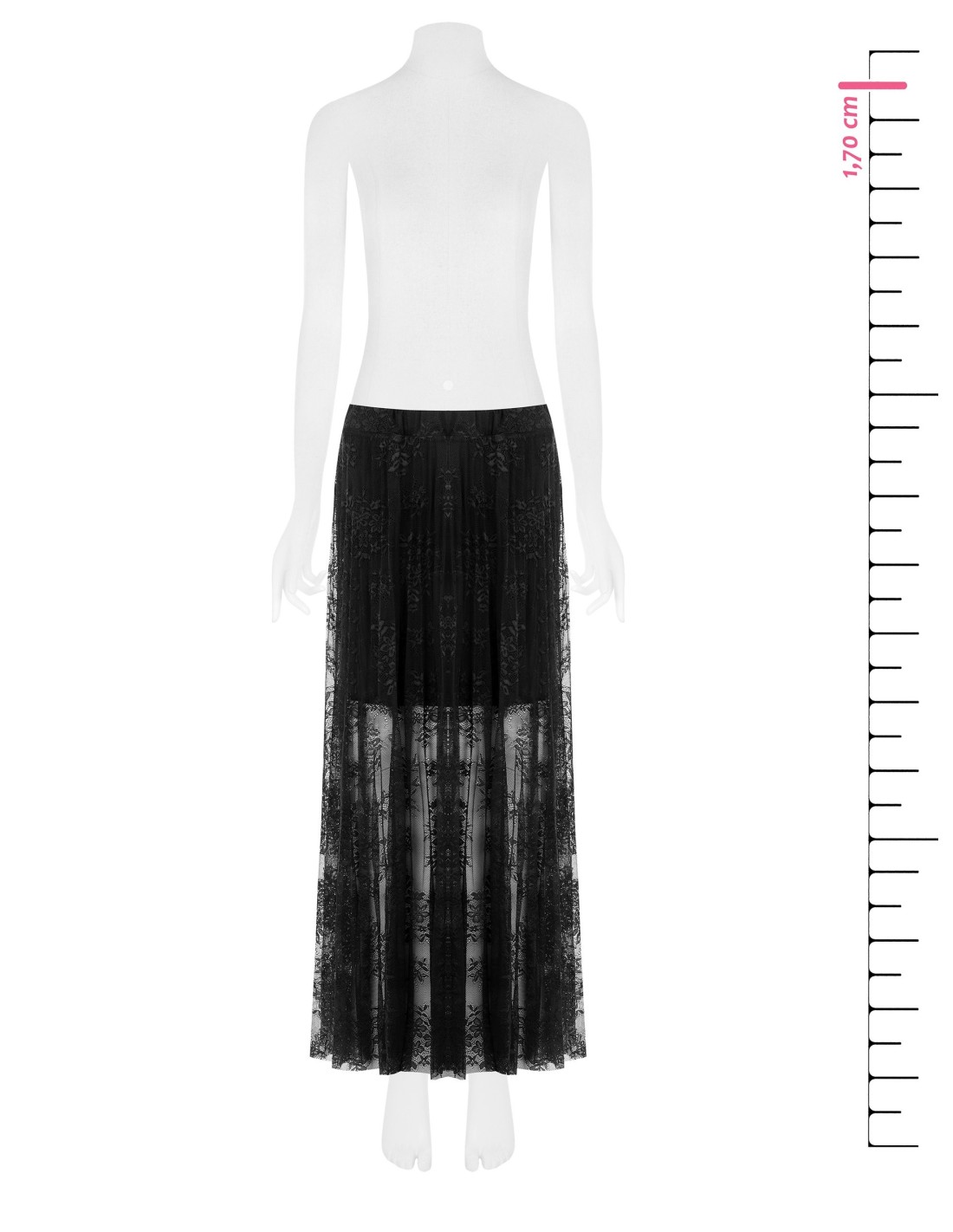 Assinada Rinascimento, silhueta fluida de cintura média com um caimento cómodo e esbelto. Tule bordado com efeito renda sobre base macia, textura leve e esvoaçante. Destaques: painel transparente na bainha e forro curto para um jogo de ver‑não‑ver; cinturino elástico invisível. Perfeita para festas e jantares, versátil também para cerimónias.