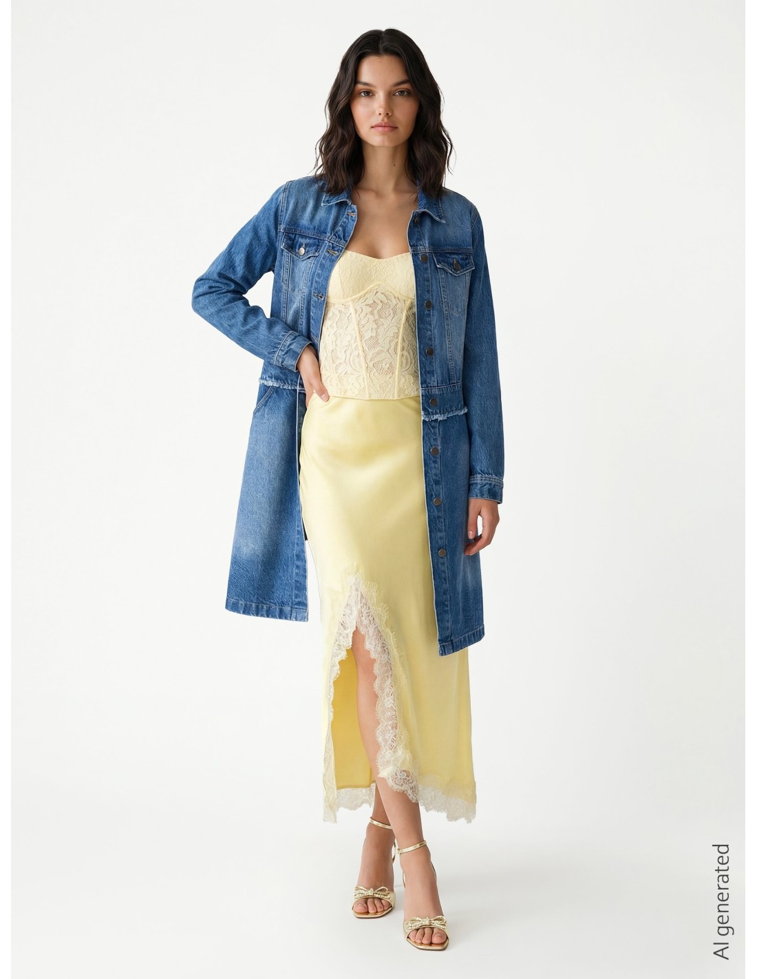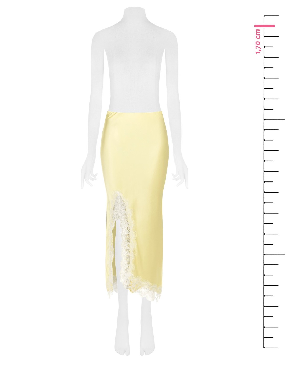 Midi de ajuste fluido, acaricia a silhueta com um tecido acetinado de toque fluido e confortável. A abertura lateral acabada em renda valoriza o movimento e confere feminilidade com discrição. Perfeita para festas, jantares especiais ou looks day-to-night.