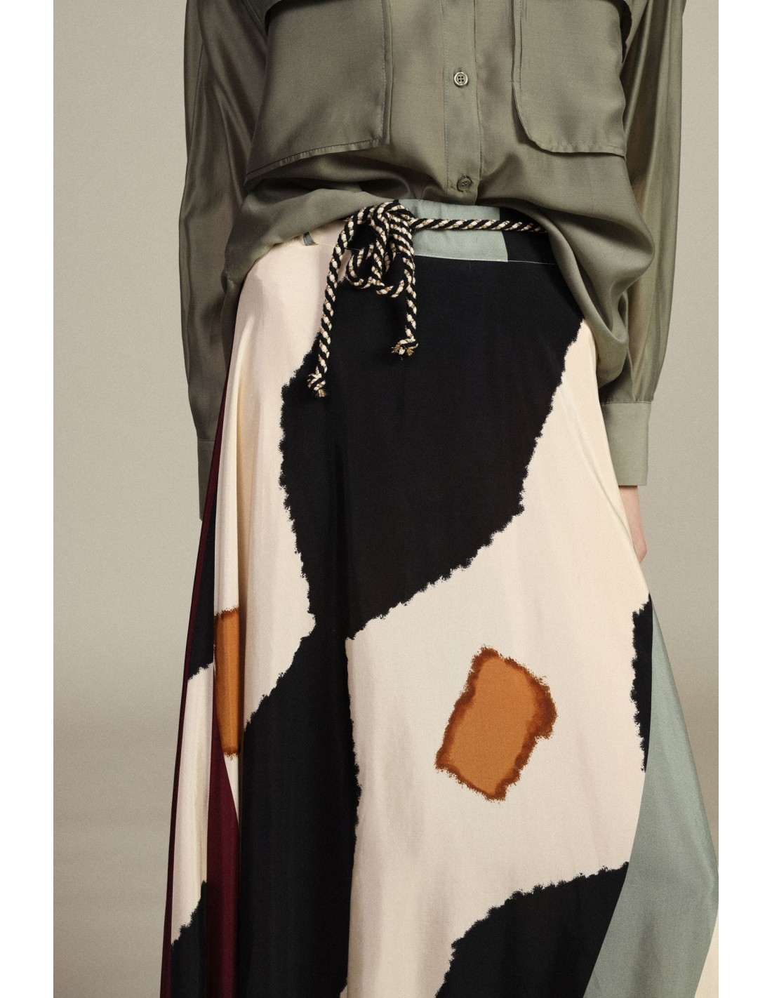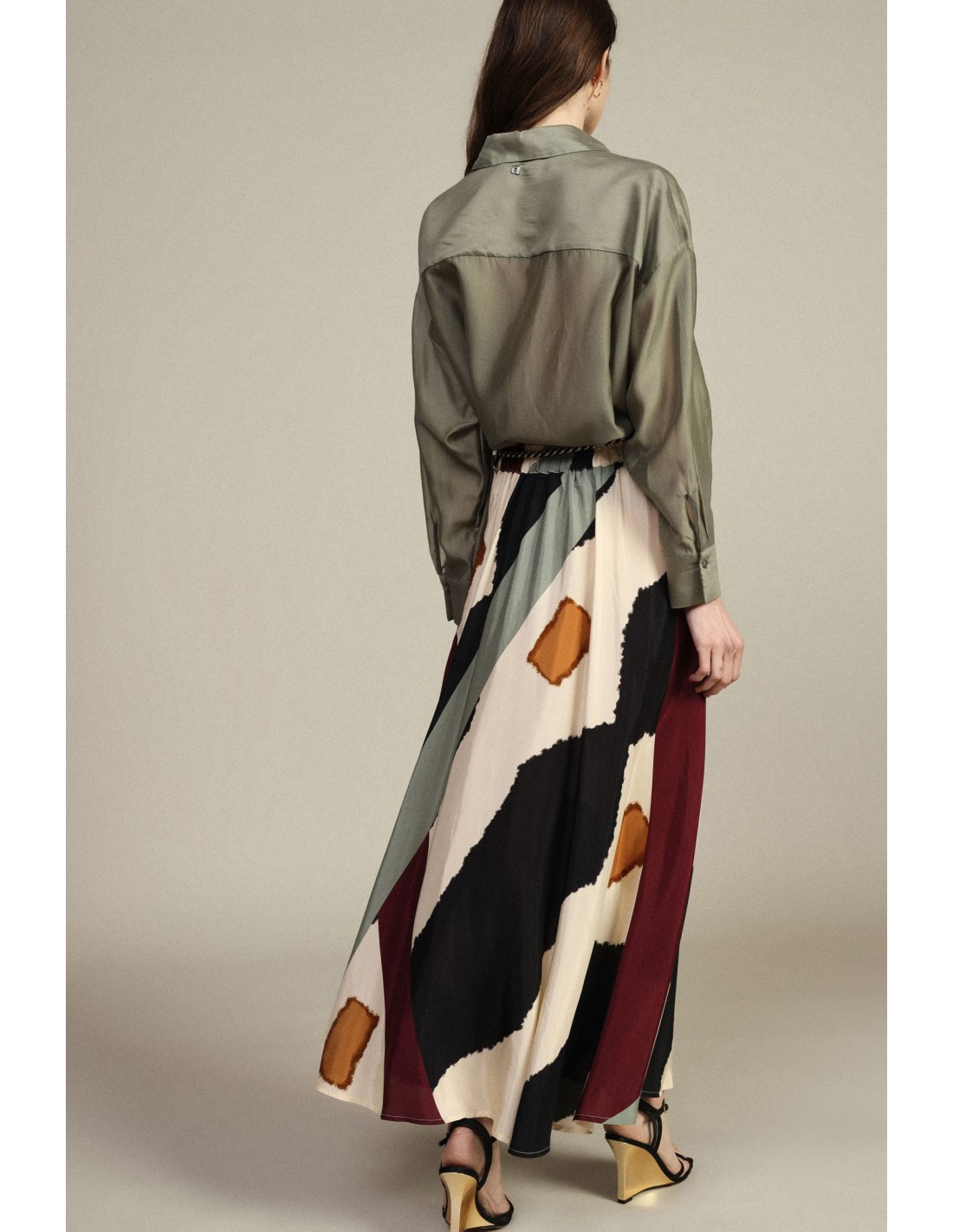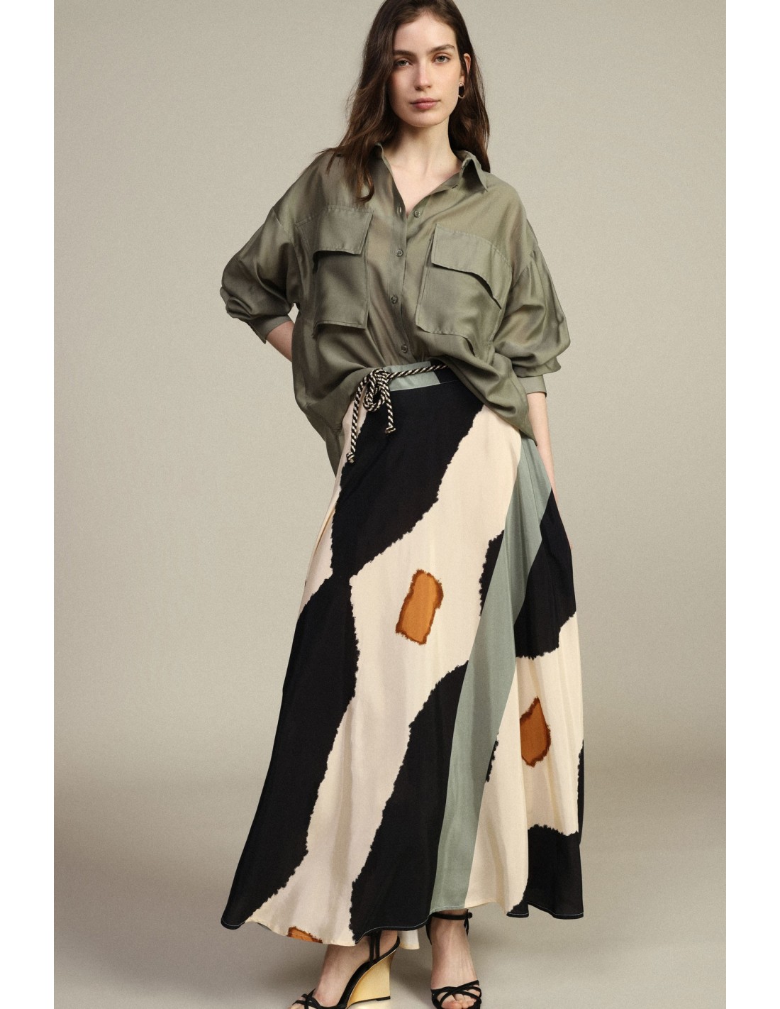 Descubra uma saia midi que une feminilidade e funcionalidade. A sua linha evasê oferece uma silhueta fluida e versátil, ideal para qualquer ocasião. O detalhe do cinto acrescenta um toque de originalidade, enquanto o corte assegura conforto e movimento. Uma escolha perfeita para quem gosta de um visual cuidado e distintivo.