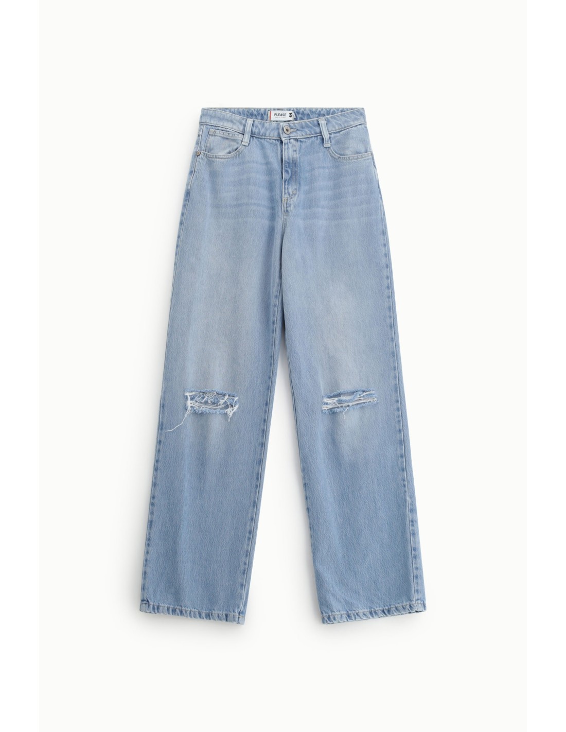 Jeans De Perna Larga Com Rasgos No Joelho Please