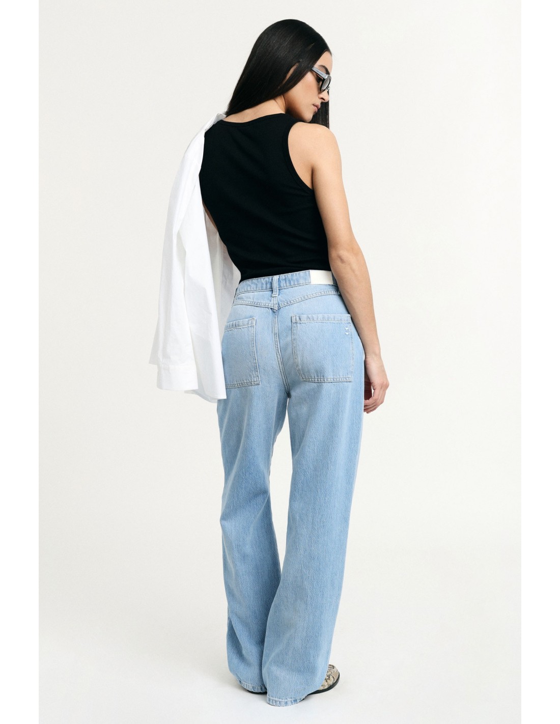 Vibração metropolitana para estes jeans de perna larga e corte recto, com rasgões visíveis nos joelhos que lhes conferem um toque arrojado. Cintura baixa e confortável, clássico de cinco bolsos e passadores para cinto, perfeitos para combinar com qualquer look do dia a dia, desde a camisa oversize à t-shirt básica.