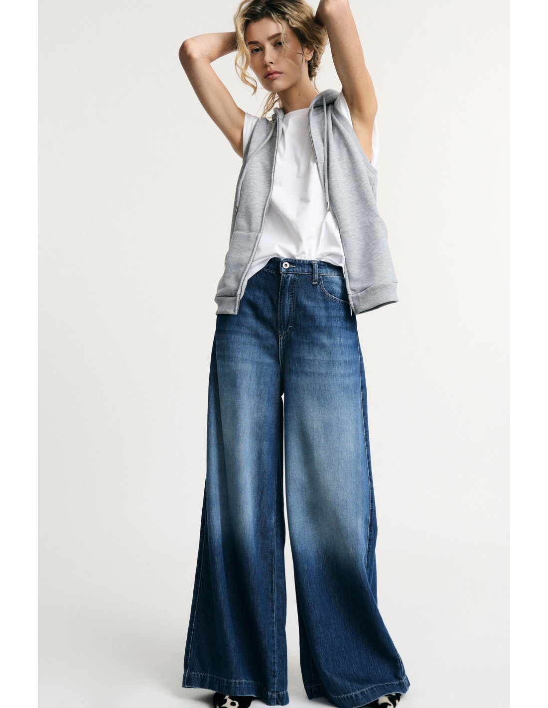 Perfeitos para renovar a rotina do teu guarda-roupa, estes jeans de perna larga com cintura alta exibem um efeito degradé super cool. A silhueta ampla confere uma vibe descontraída e oferece liberdade de movimento em qualquer situação, enquanto os bolsos práticos acrescentam funcionalidade para os dias fora da cidade.