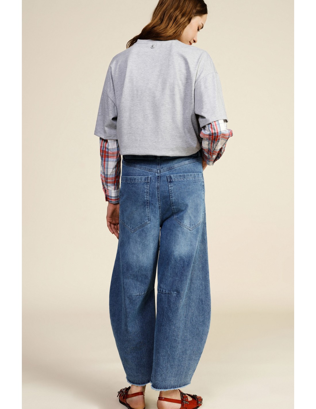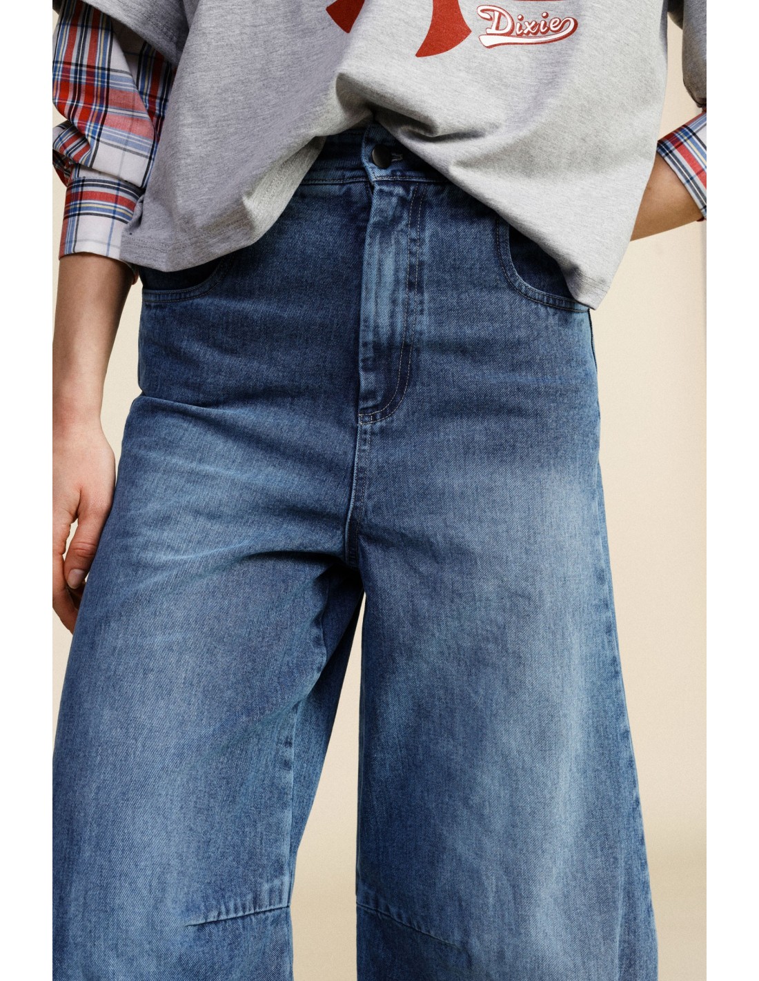 Linhas oversize e silhueta arredondada dão personalidade a estes jeans balloon fit. A cintura regular e o corte largo nas pernas tornam-nos perfeitos para dar um toque de originalidade ao look do dia a dia. A bainha com corte a vivo acrescenta um detalhe distintivo, ideal para quem gosta de se destacar sem prescindir do conforto.