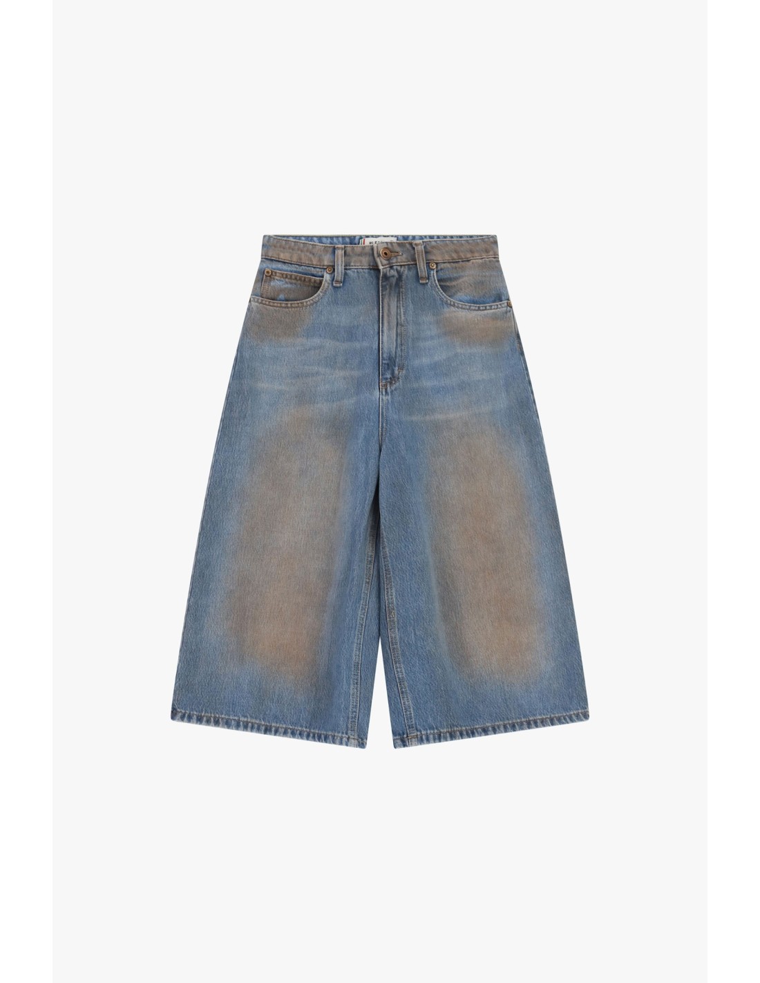 Vive a cidade com estes jeans de perna ultra larga e corte cropped, perfeitos para criar looks fora do comum todos os dias. O detalhe de cinco bolsos acrescenta praticidade e um toque icónico à silhueta ampla, ideal para quem gosta de se destacar sem renunciar ao conforto nas aventuras do dia a dia.