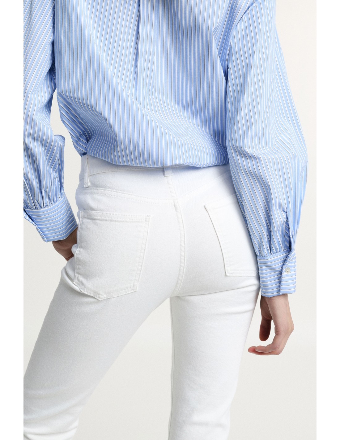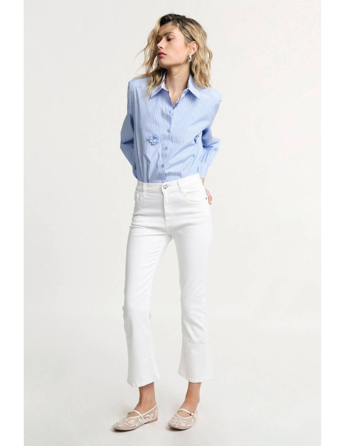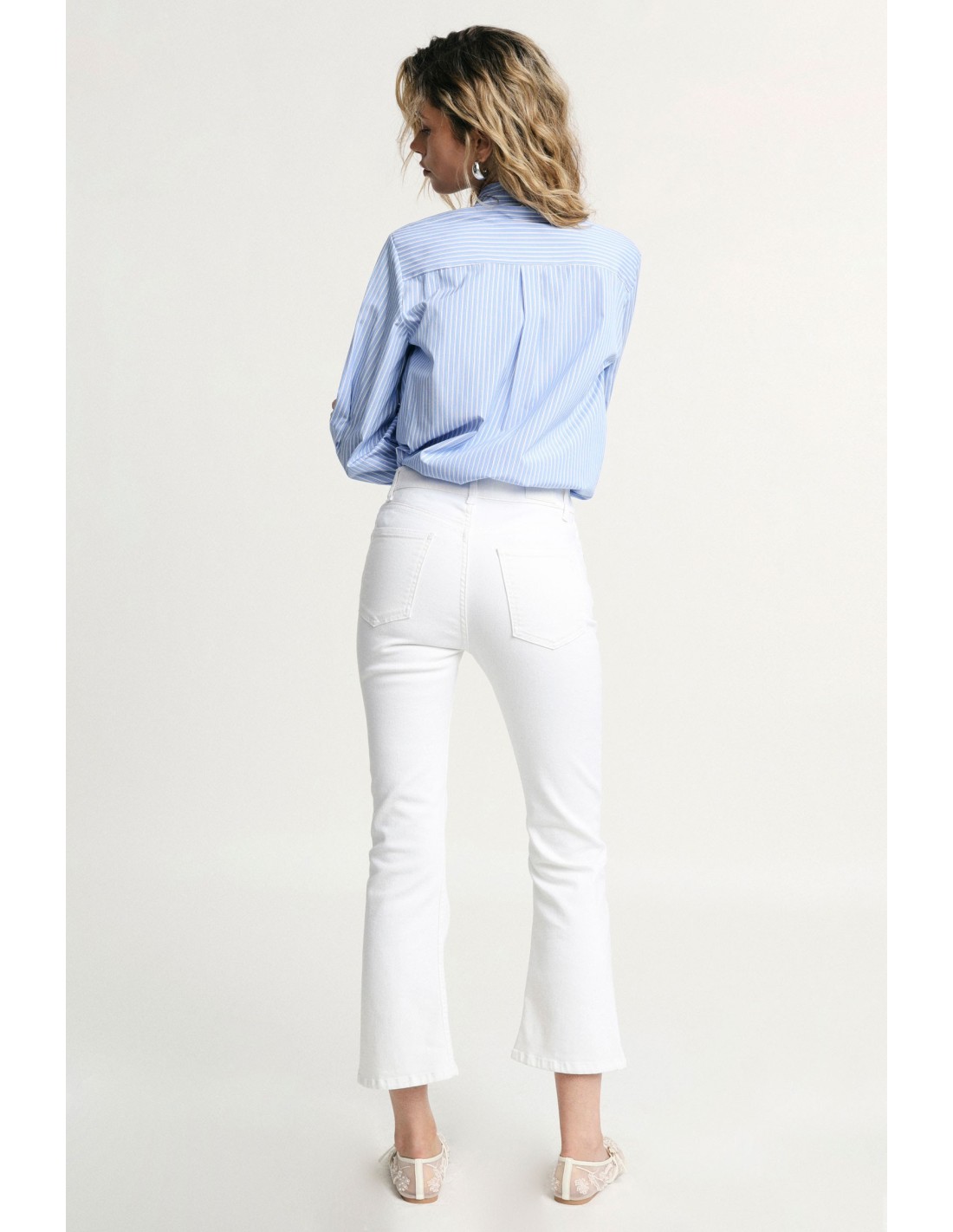 Dá espaço à tua criatividade com estes jeans flare de cinco bolsos e cintura alta, ideais para te movimentares entre compromissos e novas aventuras na cidade. O corte evasé confere alongamento, perfeitos para quem quer experimentar combinações frescas e versáteis sem renunciar à praticidade do dia a dia.