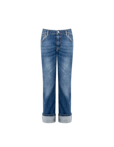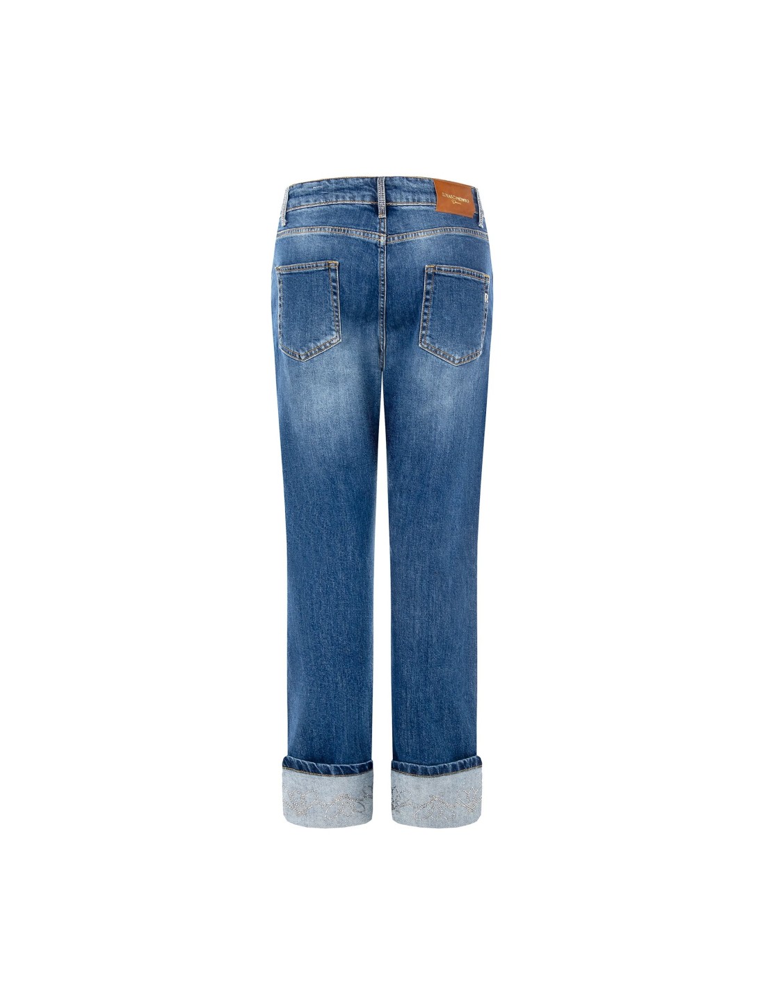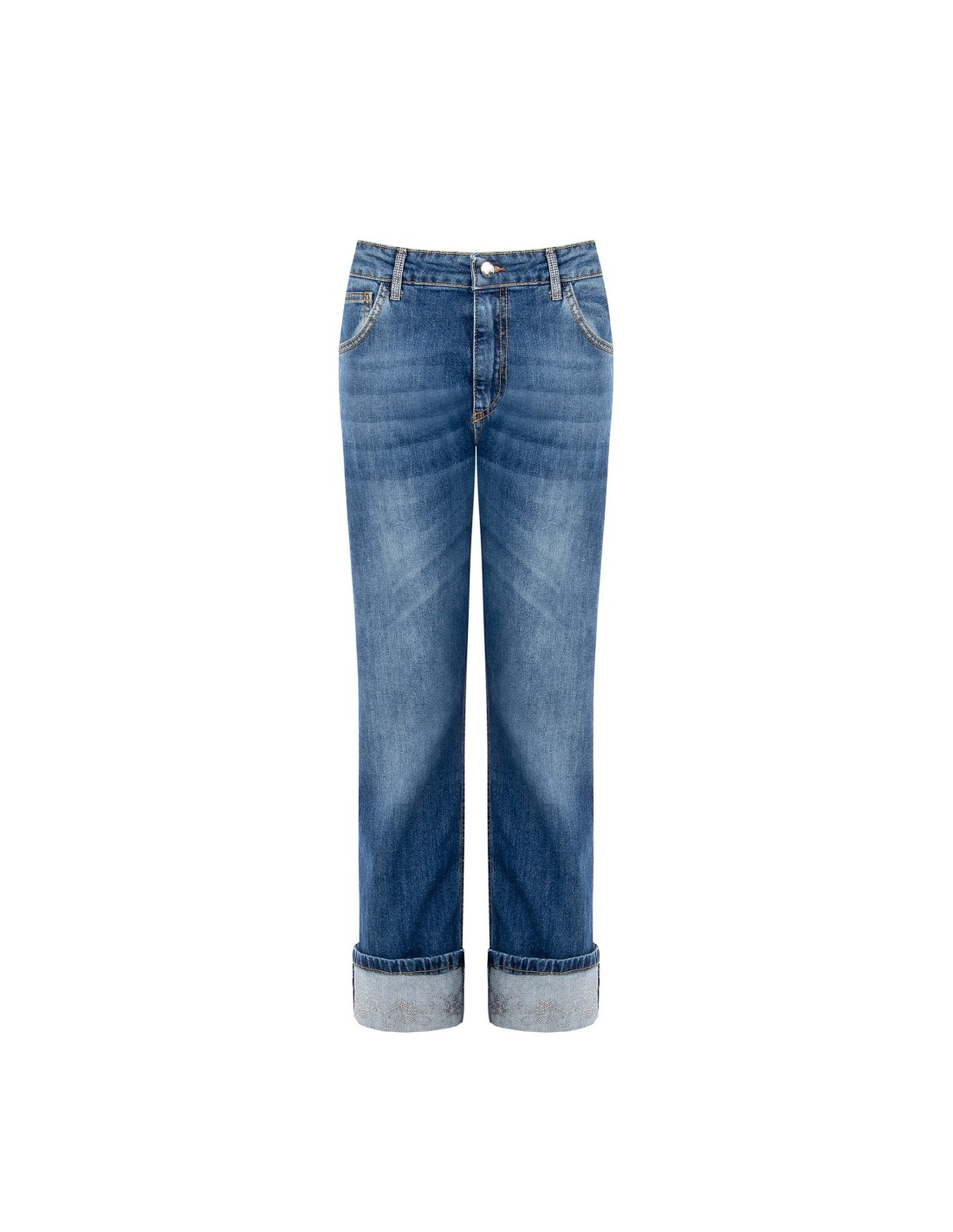 Jeans straight com dobrar e strass