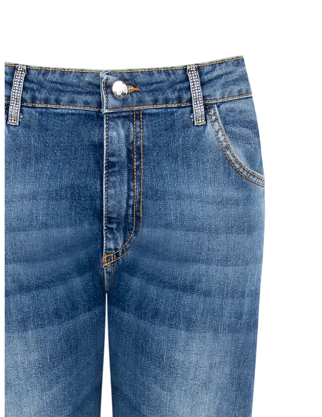 Calças de ganga direitas com pregas e brilhantes Rinascimento