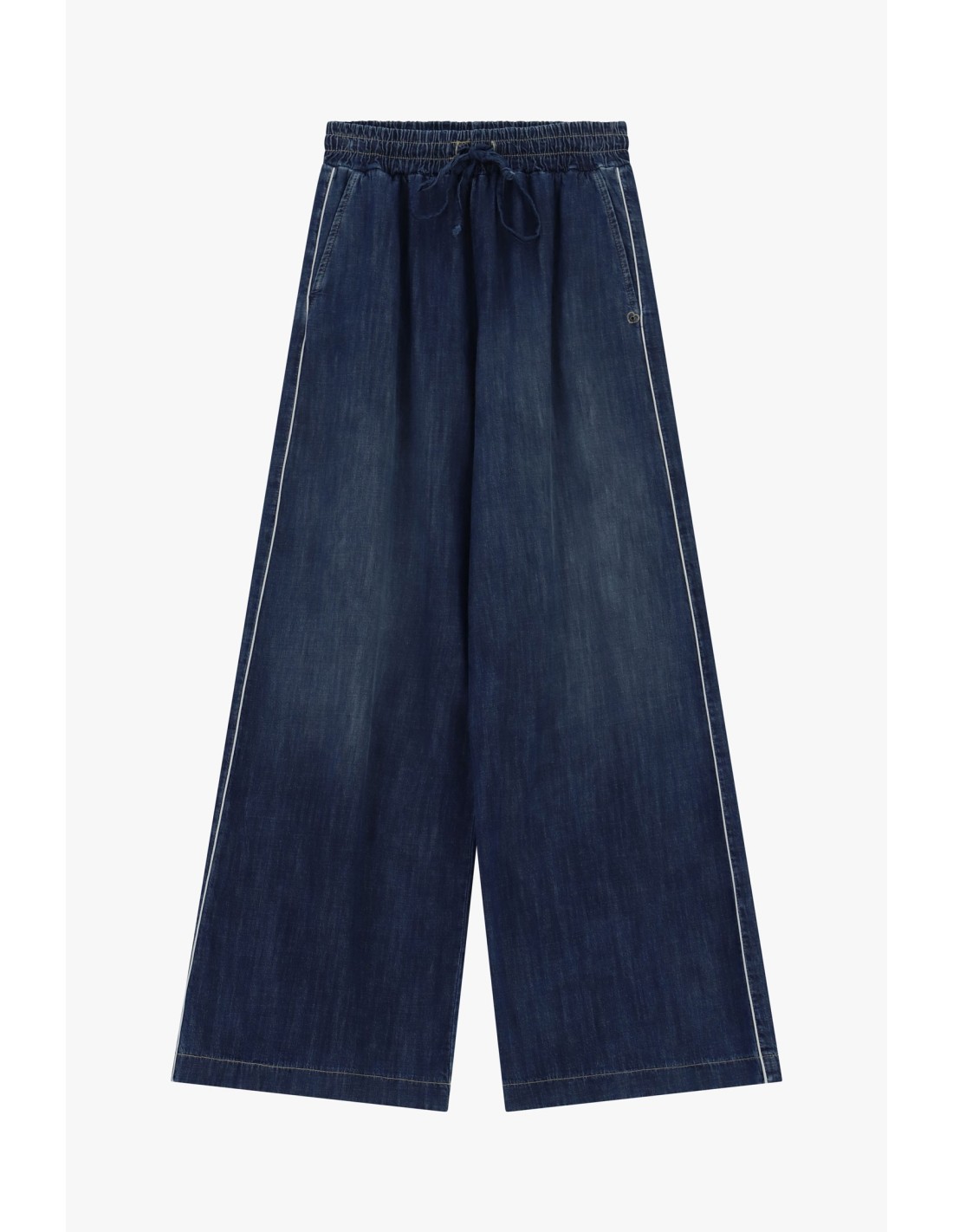 Jeans wide leg com elástico e cordão na cintura
