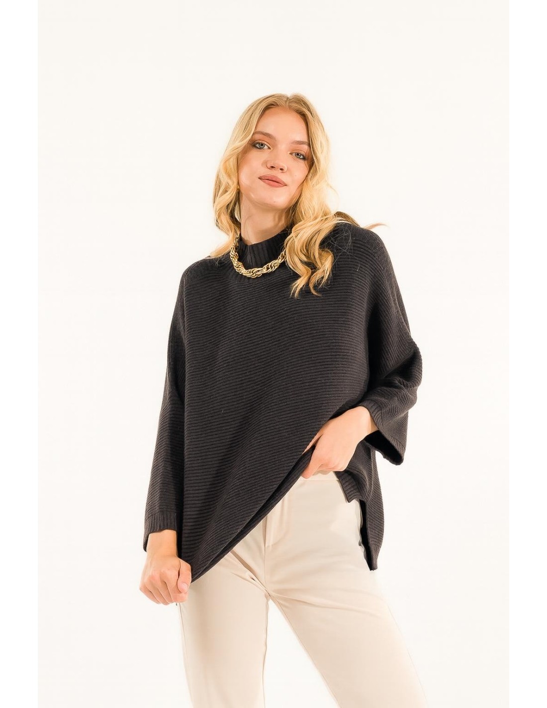 Linhas suaves e corte descontraído para uma camisola que envolve com elegância e leveza. Perfeita para um look sofisticado e intemporal, para ser usada todos os dias para se sentir instantaneamente chique e irresistivelmente feminina.
