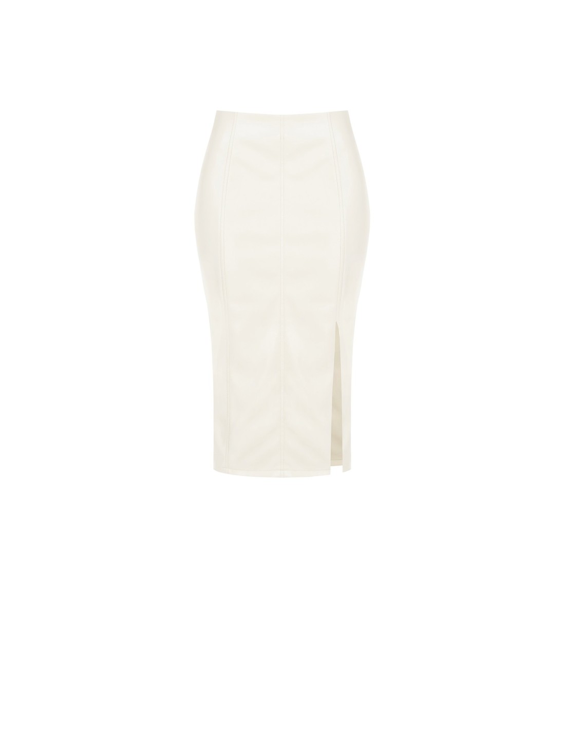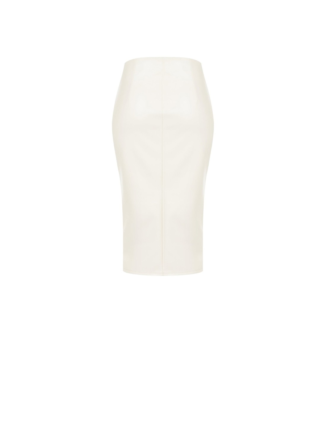 Rinascimento apresenta uma longuete de cintura alta com um corte justo que esculpe a silhueta com conforto. Feita em suave pele sintética com efeito soft-touch, é acabada com costuras verticais que alongam e com uma fenda lateral para um andar fluido. Perfeita do escritório ao aperitivo, com saltos ou botins.