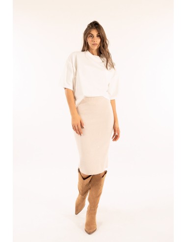 Saia midi em malha Kontatto de corte justo mas confortável graças à estrutura elástica. Textura macia e compacta que envolve a silhueta. Cintura subida com faixa em canelado e pequena abertura na parte de trás para liberdade de movimento. Perfeita do escritório ao aperitivo, com botas ou sapatos de salto.