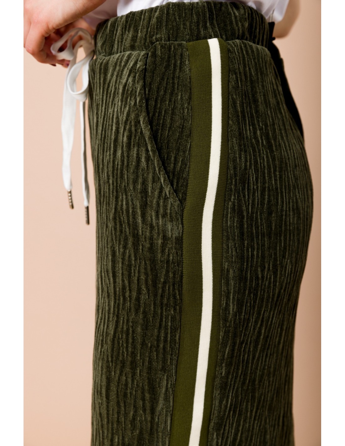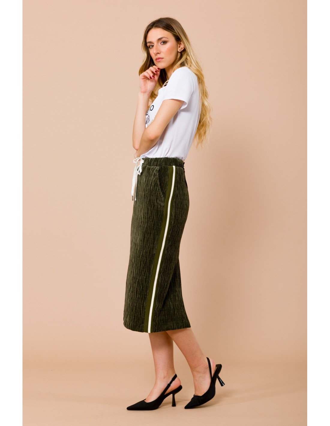 Longuete Com Bandas Caneladas, Cintura Com Cordão E Fenda No Centro Atrás Maryley