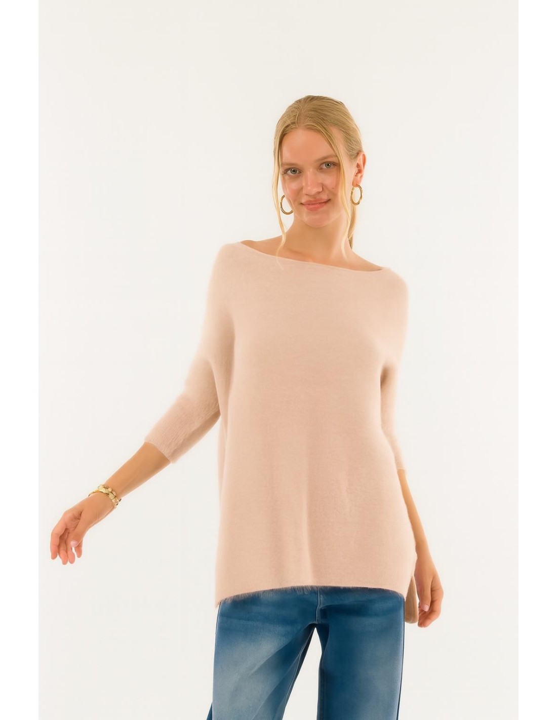 Envolvente mas leve, esta camisola com um sofisticado decote barco confere uma elegância natural e intemporal. Perfeita para realçar cada gesto, combina facilmente tanto com looks casuais como sofisticados. Um verdadeiro must-have para brilhar todos os dias.