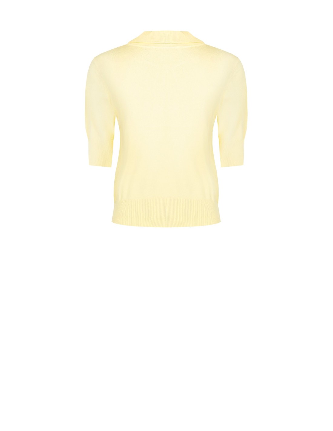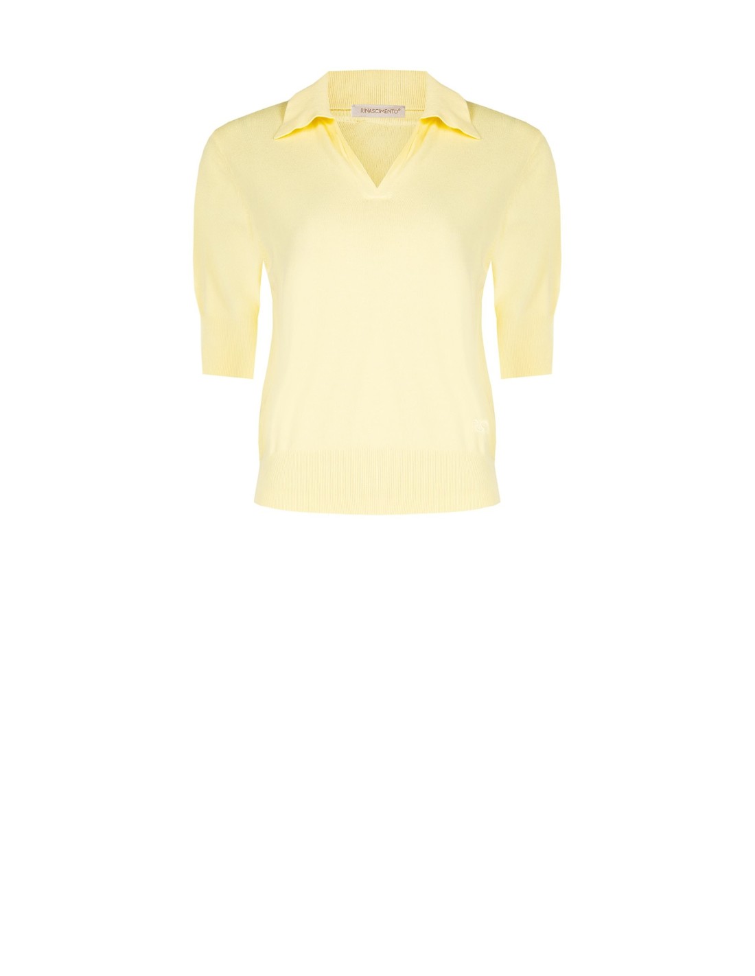 Top em malha leve de corte justo mas confortável, em tricô macio com mangas à meio braço. Gola de camisa e decote em V valorizam o decote, bainha canelada com logo RS tom sobre tom. Perfeito com calças ou denim para o escritório e o chic do dia a dia.