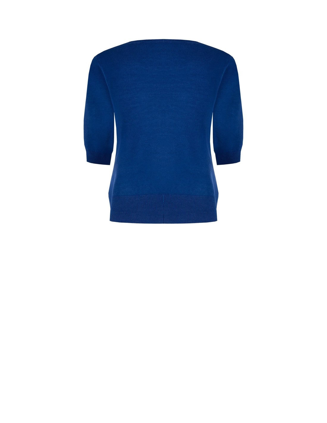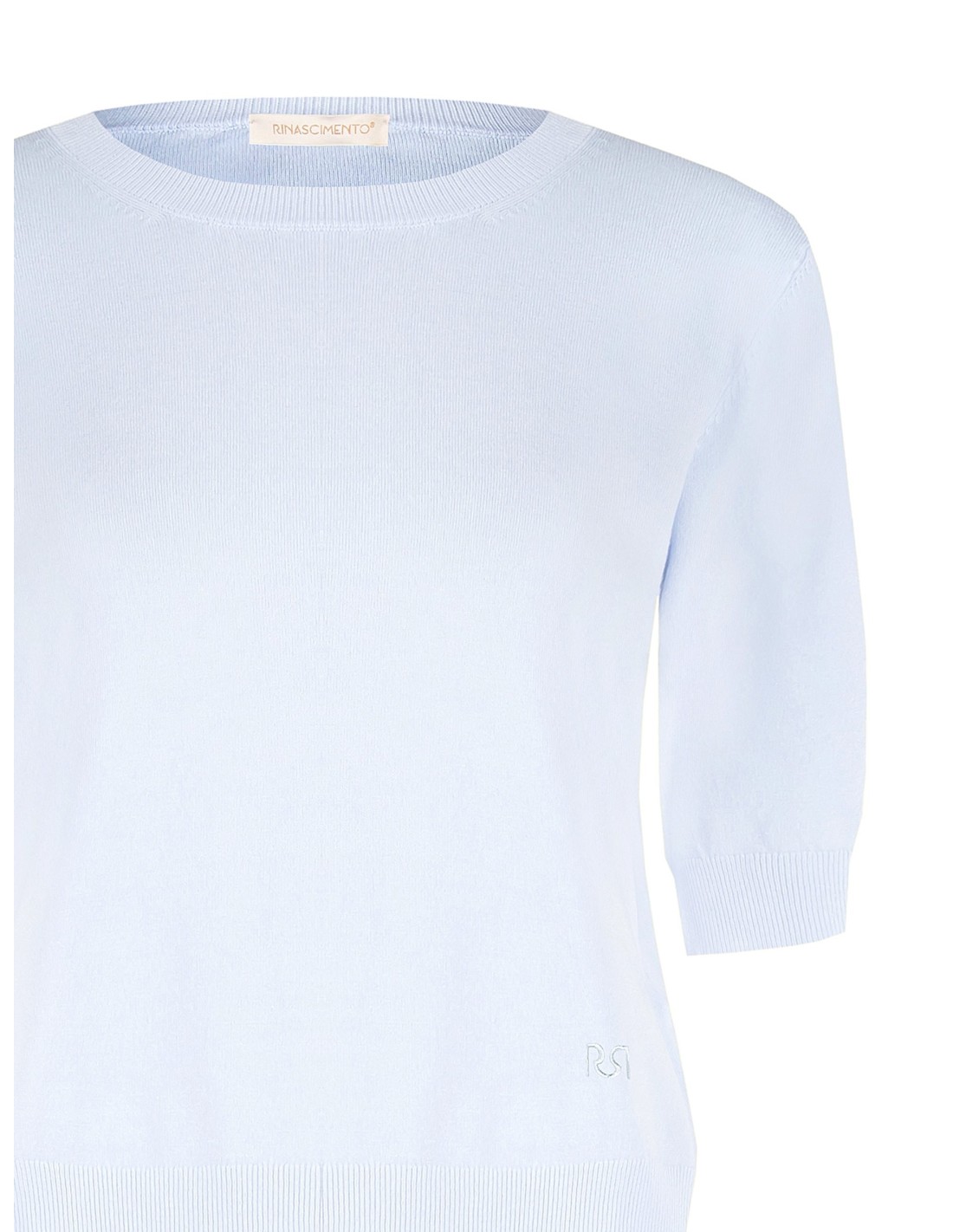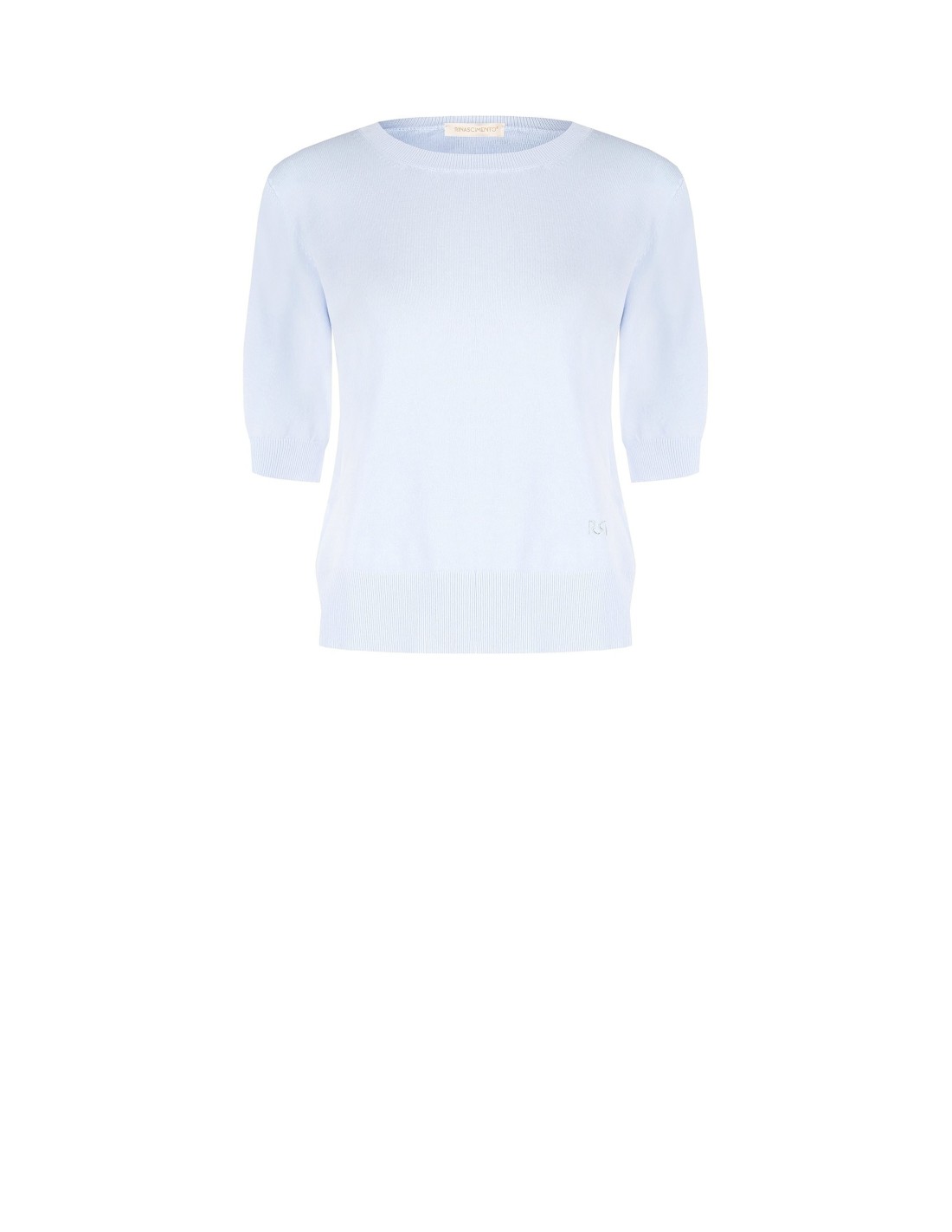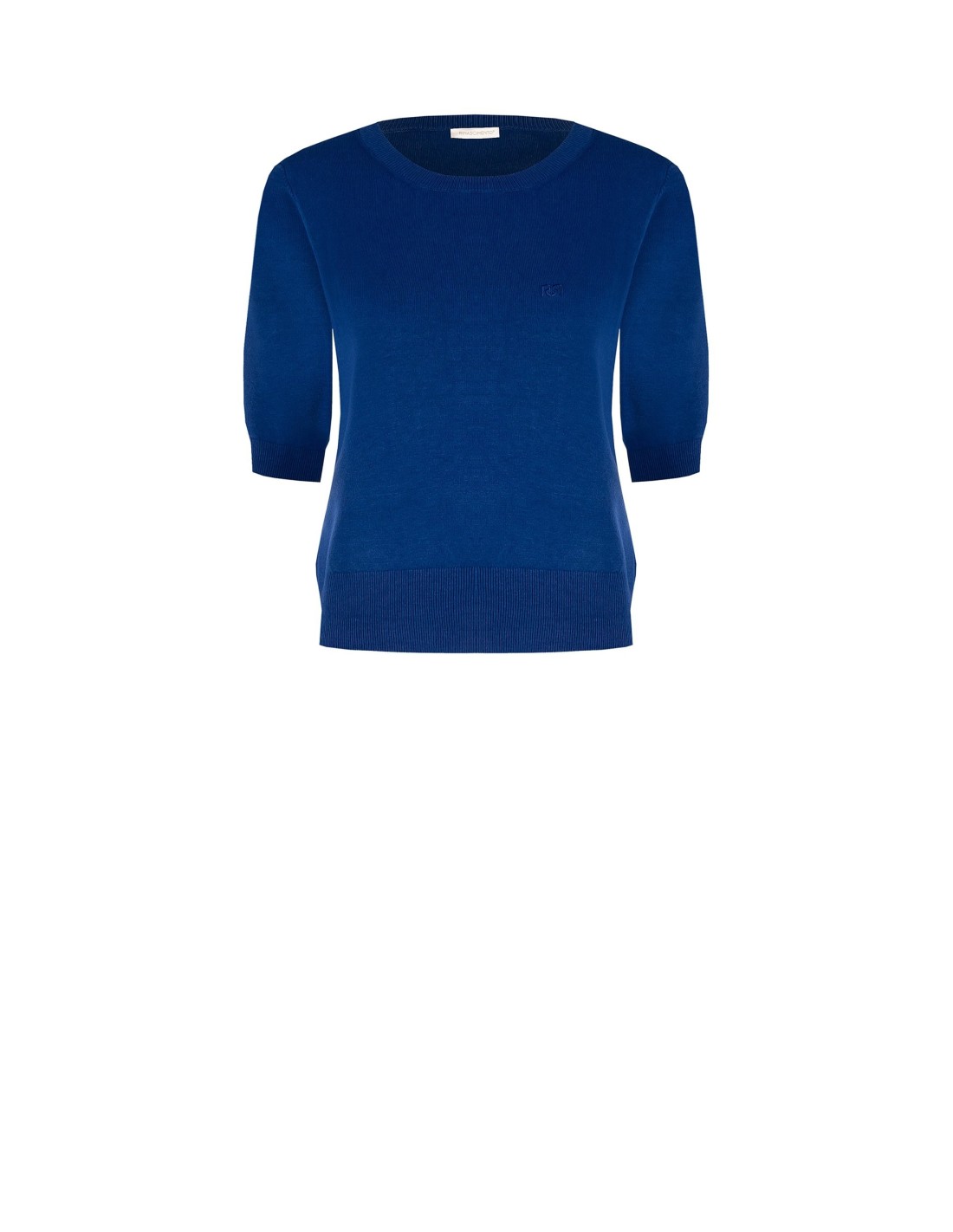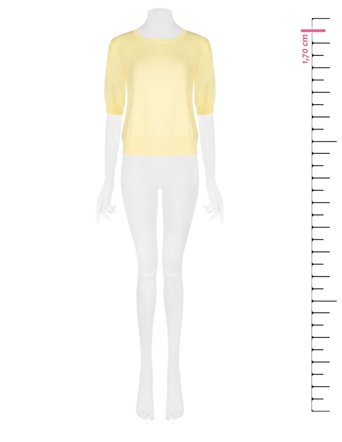 Top em malha leve de corte justo mas confortável, com decote redondo limpo e mangas até ao cotovelo acabadas em canelado que valorizam os braços. O pequeno logo bordado completa o design essencial, perfeito para o escritório e para looks do dia a dia por baixo de blazer ou cardigan.