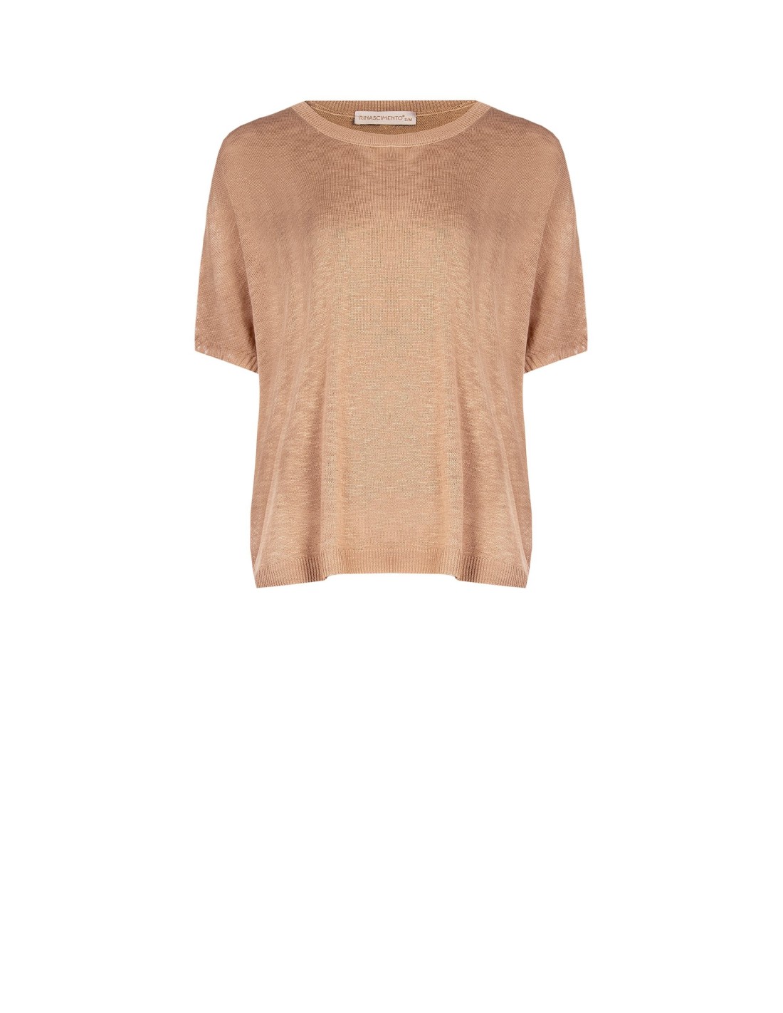 Linhas suaves e volume leve definem este top em fio fino com efeito semitransparente. O decote redondo e as bainhas caneladas valorizam a silhueta sem marcar. Perfeito sozinho ou em sobreposição, do escritório ao lazer.
