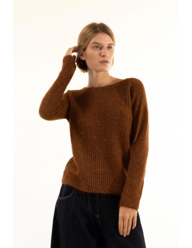 Kontatto assina um pulôver de corte macio e feminino, em malha canelada suave com toque envolvente. A gola redonda ampla delineia o decote, enquanto micro lantejoulas dispersas conferem um brilho discreto. Punhos e barra elásticos garantem conforto e uma silhueta limpa. Versátil para o escritório e saídas noturnas.