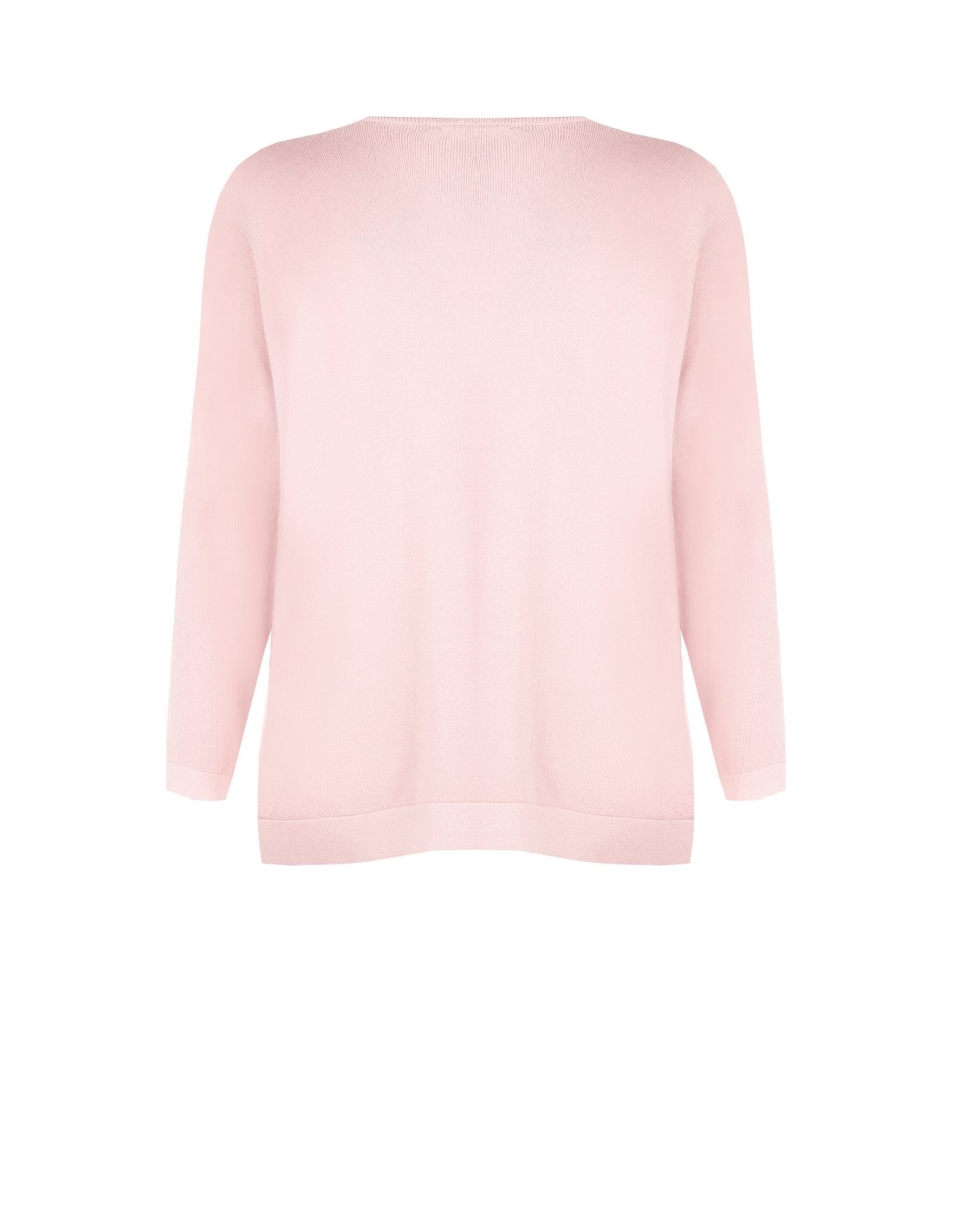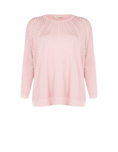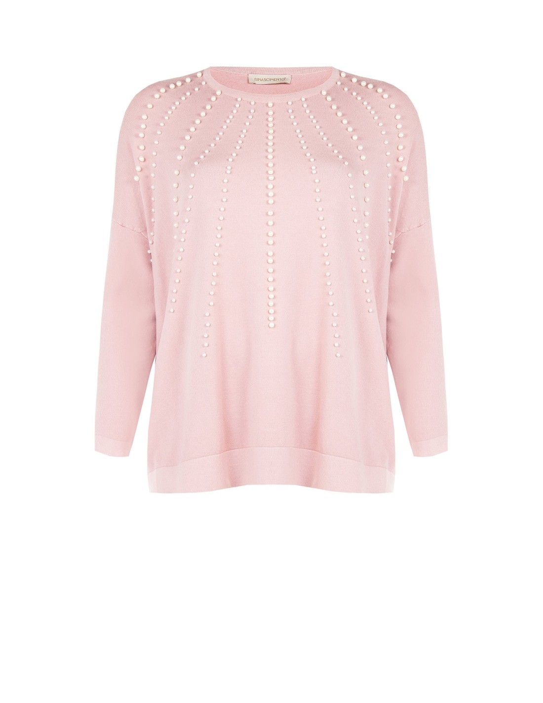 Camisola curvy com corte suave e fluido, em tricô leve e confortável. A gola redonda realça o decote, enquanto as aplicações de pérolas desenham raios que alongam a silhueta. Ombros caídos e toque macio para uma elegância descontraída. Perfeita para o escritório com calças de alfaiataria ou para um aperitivo com denim e saltos.