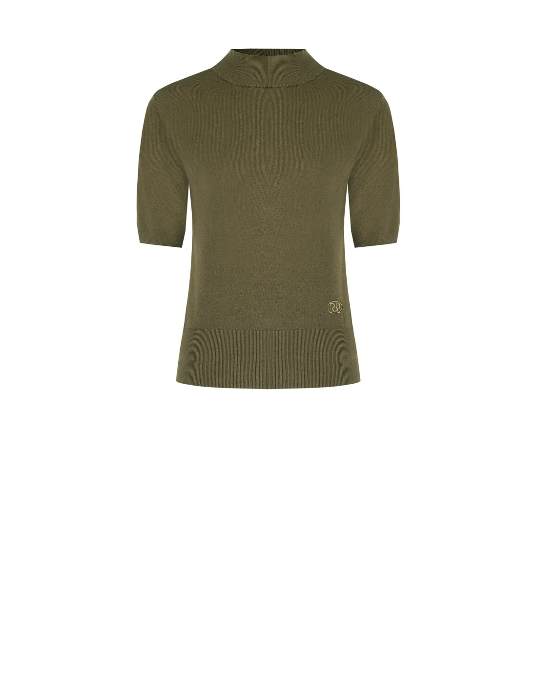 Camisola de manga curta com corte justo mas confortável. Malha fina soft-touch com toque sedoso e elástica. Gola alta macia que alonga a silhueta, barra e punhos em canelado para uma linha limpa; pequeno bordado com iniciais na lateral como assinatura discreta. Perfeita para o escritório e para um look quotidiano chique, por baixo de um blazer ou sozinha.