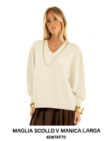 Malha de manga larga com decote em V Kontatto