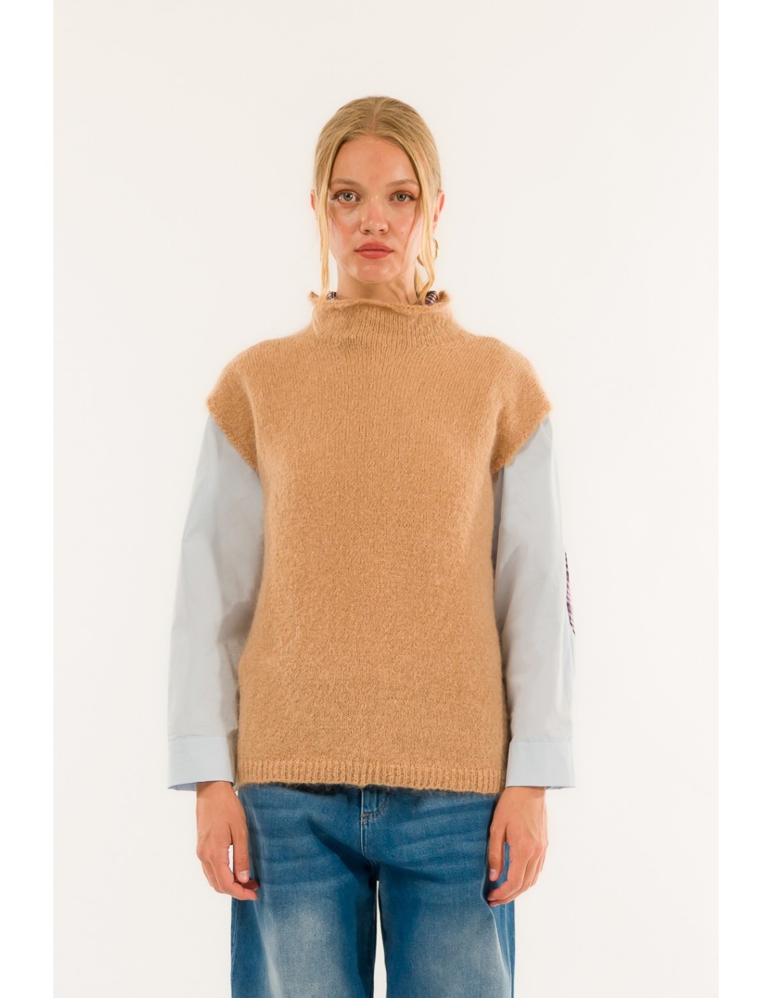 Envolva o seu estilo numa malha suave, com uma silhueta elegante e refinada. A gola delicadamente estruturada confere carácter, para um look feminino e contemporâneo, perfeito para usar de manhã à noite com uma elegância inata.