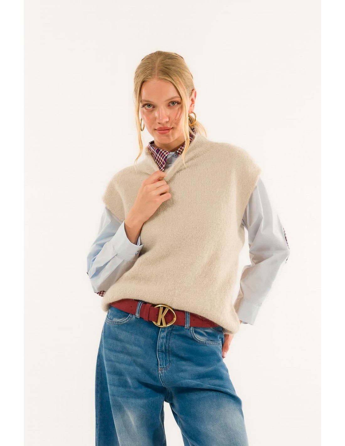 Envolva o seu estilo numa malha suave, com uma silhueta elegante e refinada. A gola delicadamente estruturada confere carácter, para um look feminino e contemporâneo, perfeito para usar de manhã à noite com uma elegância inata.