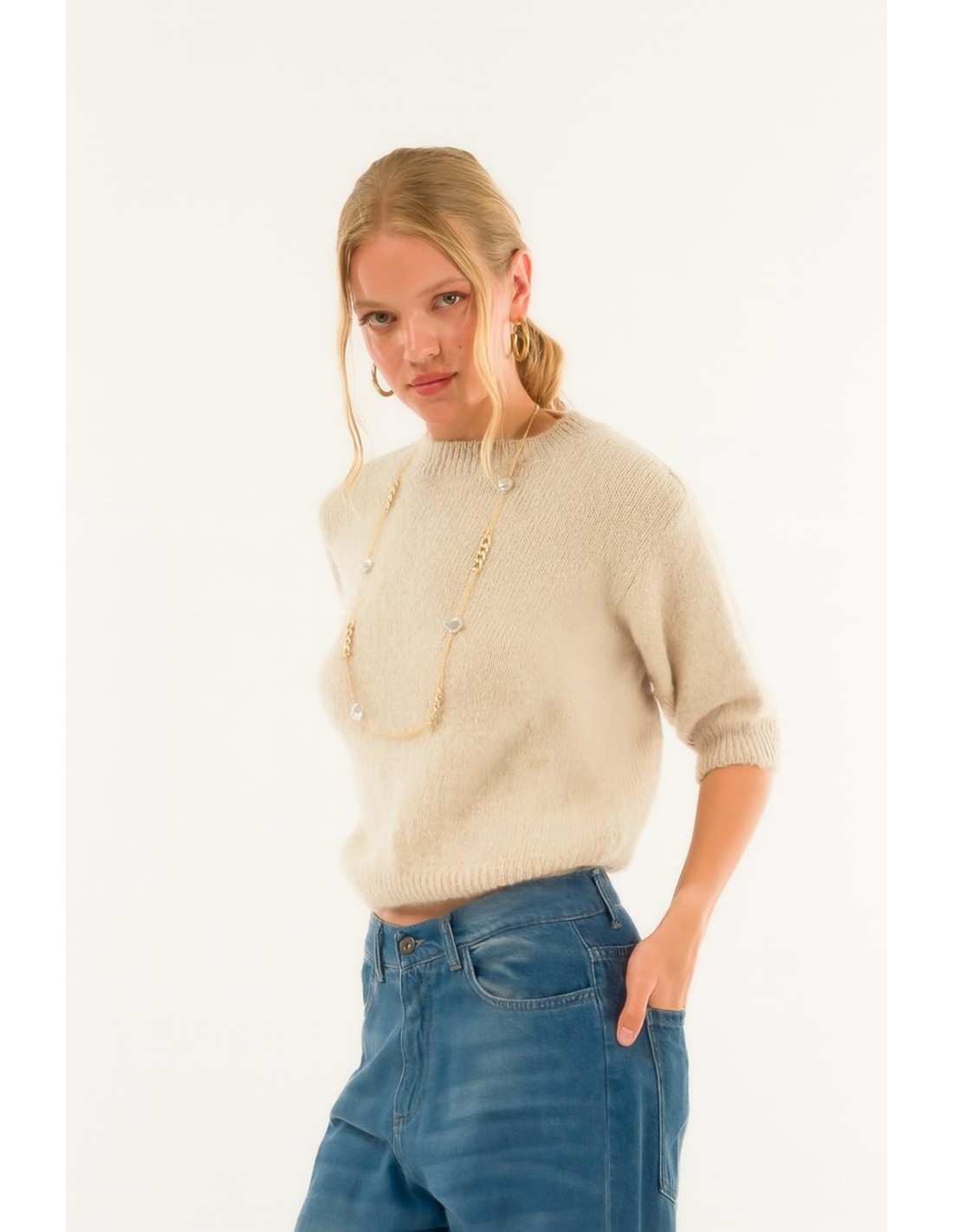 A camisola Kontatto conquista pela sua suavidade e silhueta refinada. Perfeita para um estilo requintado e intemporal, eleva todos os looks com um toque de classe casual e uma feminilidade irresistível. Um must-have versátil e chique para todas as estações.